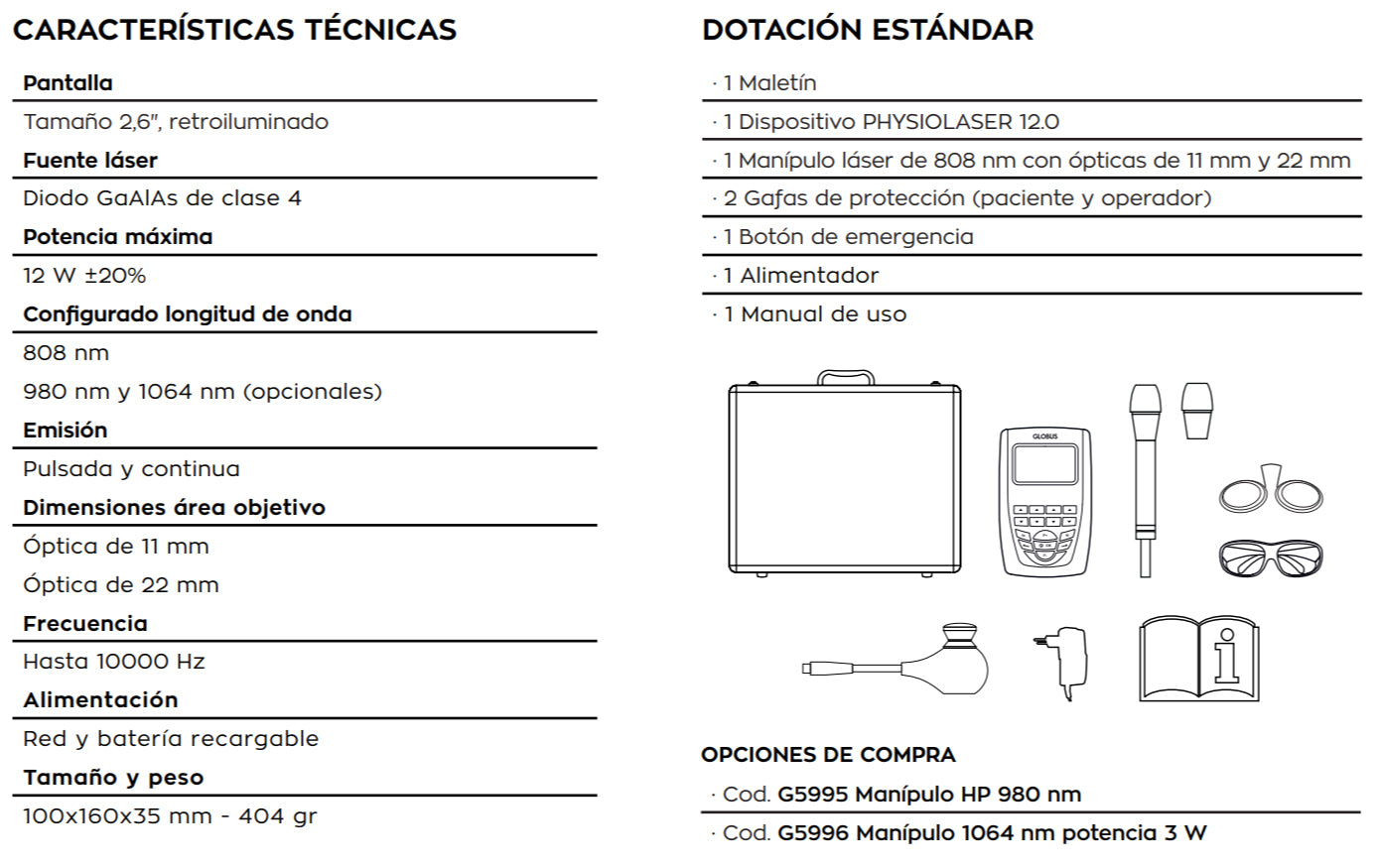 PHYSIOLASER 12.0 es el dispositivo de terapia láser más manejable y potente de la línea globus. La amplia biblioteca de programas permite al profesional tratar cualquier trastorno musculoesquelético y algunos problemas relacionados con heridas y úlceras de la piel. Sin duda uno de los dispositivos con la mejor relación calidad-precio de toda la gama.