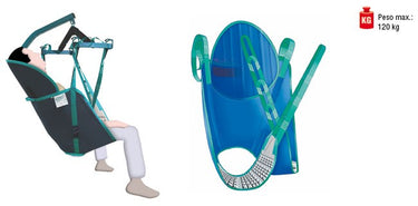 Para las transferencias mas delicadas y para ciertos casos puede ser recomendable utilizar un arnés de montaje rápido con cabezal. El paciente apoya la cabeza durante la transferencia y además se siente más arropado, dándole mayor sensación de seguridad. Peso máximo: 120 kg.