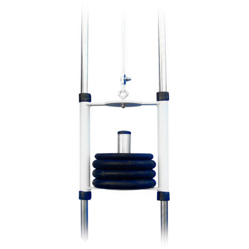 Aparato formado por dos guias de acero inoxidable por las cuales se desliza un carro en sentido vertical que se acciona mediante polea.