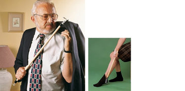 Barra de madera con unos ganchos en los extremos que sirve de ayuda para poner y quitar la ropa.