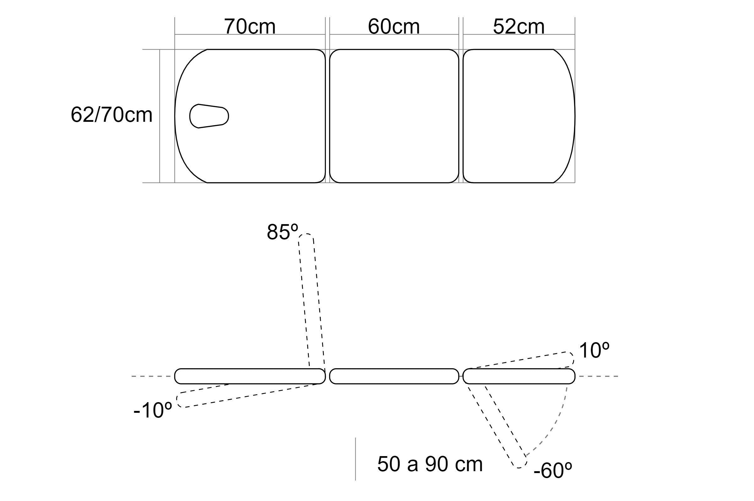 Camilla tipo sillón de tres secciones con regulación de altura eléctrica con mando.