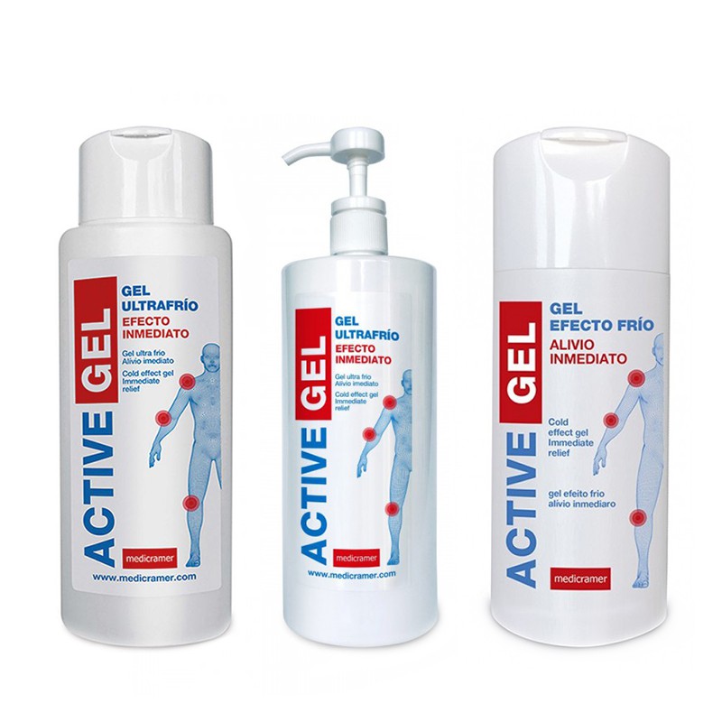 ACTIVE GEL es un gel térmico de efecto ultrafrío que proporciona un efecto relajante inmediato gracias a su efecto frío. Este gel se ha convertido en todo un referente en el tratamiento de lesiones relacionadas con la práctica deportiva, profesional o con la edad, como tendinitis, bursitis, artritis y artrosis. Su potente fórmula, que incluye transmisores de ultrasonidos, lo convierte en un producto indispensable en cualquier consulta de fisioterapia.