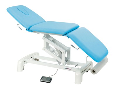 Esta camilla está dividida en tres secciones o segmentos independientes, cada uno de los cuales puede ajustarse mediante motores eléctricos, lo que permite una amplia variedad de configuraciones de posición para diferentes usos clínicos y terapéuticos.