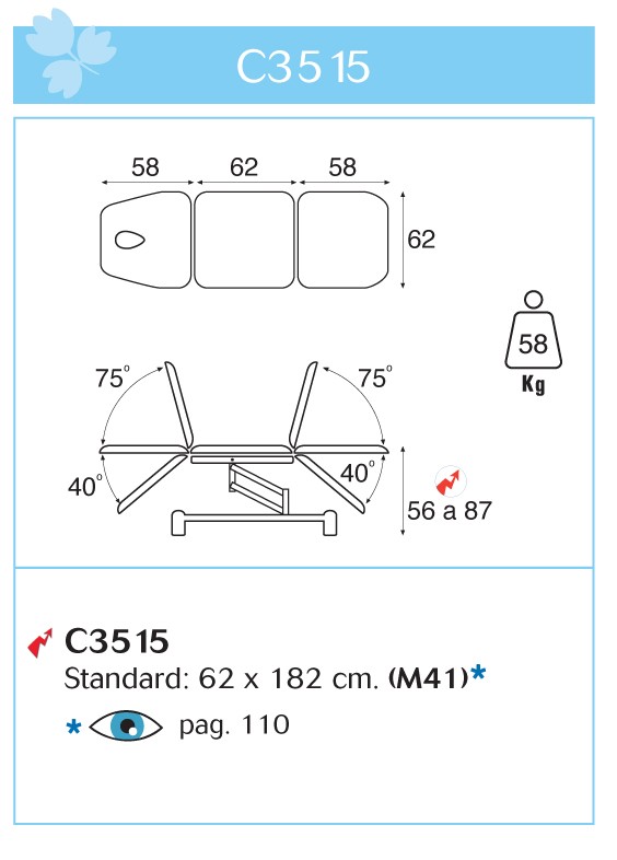 Camilla eléctrica 3 cuerpos 62 x 182 C3515M41