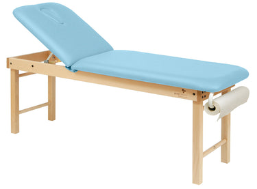 Fabricada con madera natural resistente, proporciona estabilidad y durabilidad, mientras que sus dos cuerpos permiten ajustar la inclinación para mayor comodidad del paciente y facilidad de trabajo para el profesional. Su estructura robusta asegura seguridad durante cada uso, ideal para clínicas que buscan funcionalidad y confort en un solo equipo. Perfecta para quienes valoran un ambiente natural y confortable en sus espacios de atención.