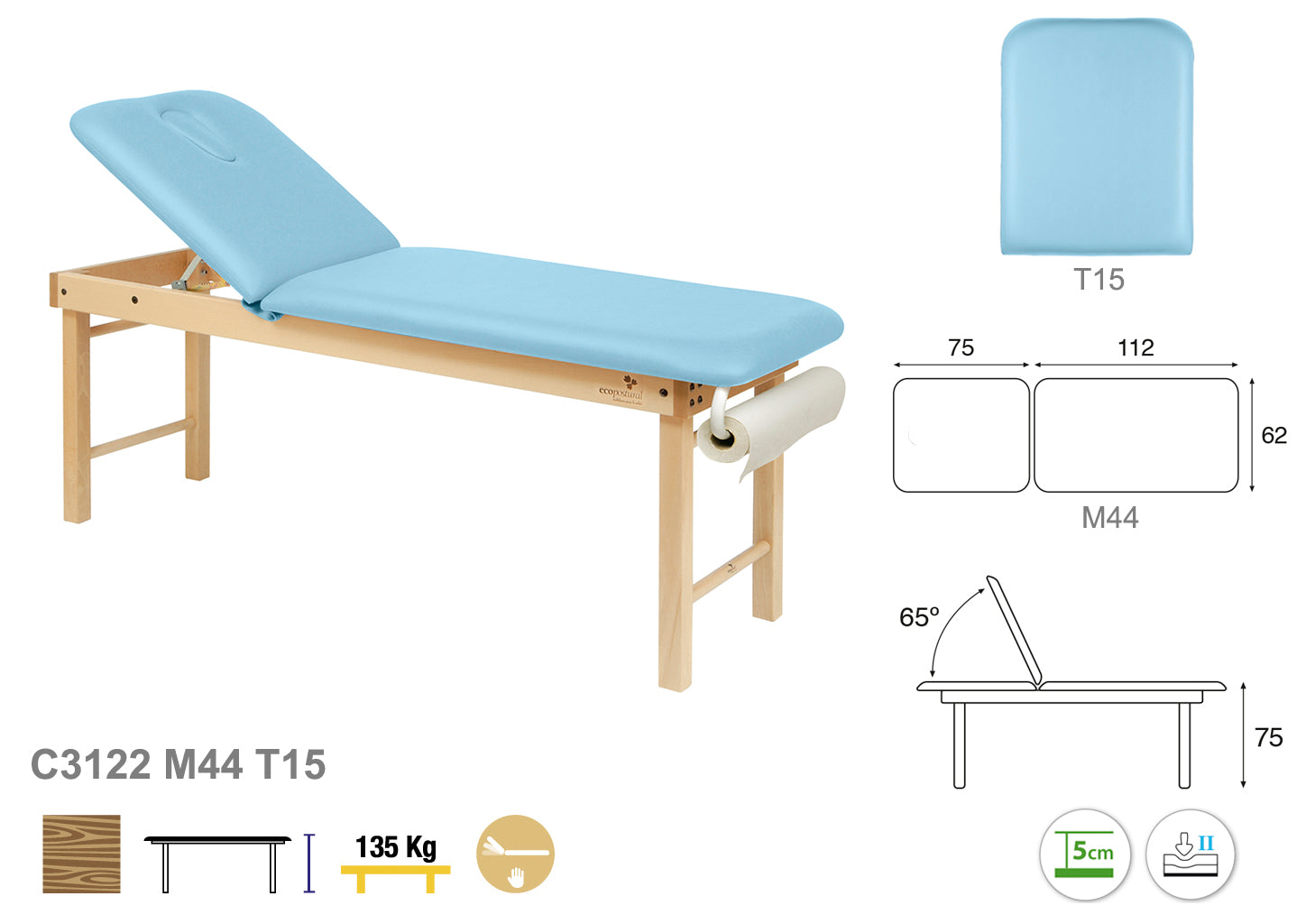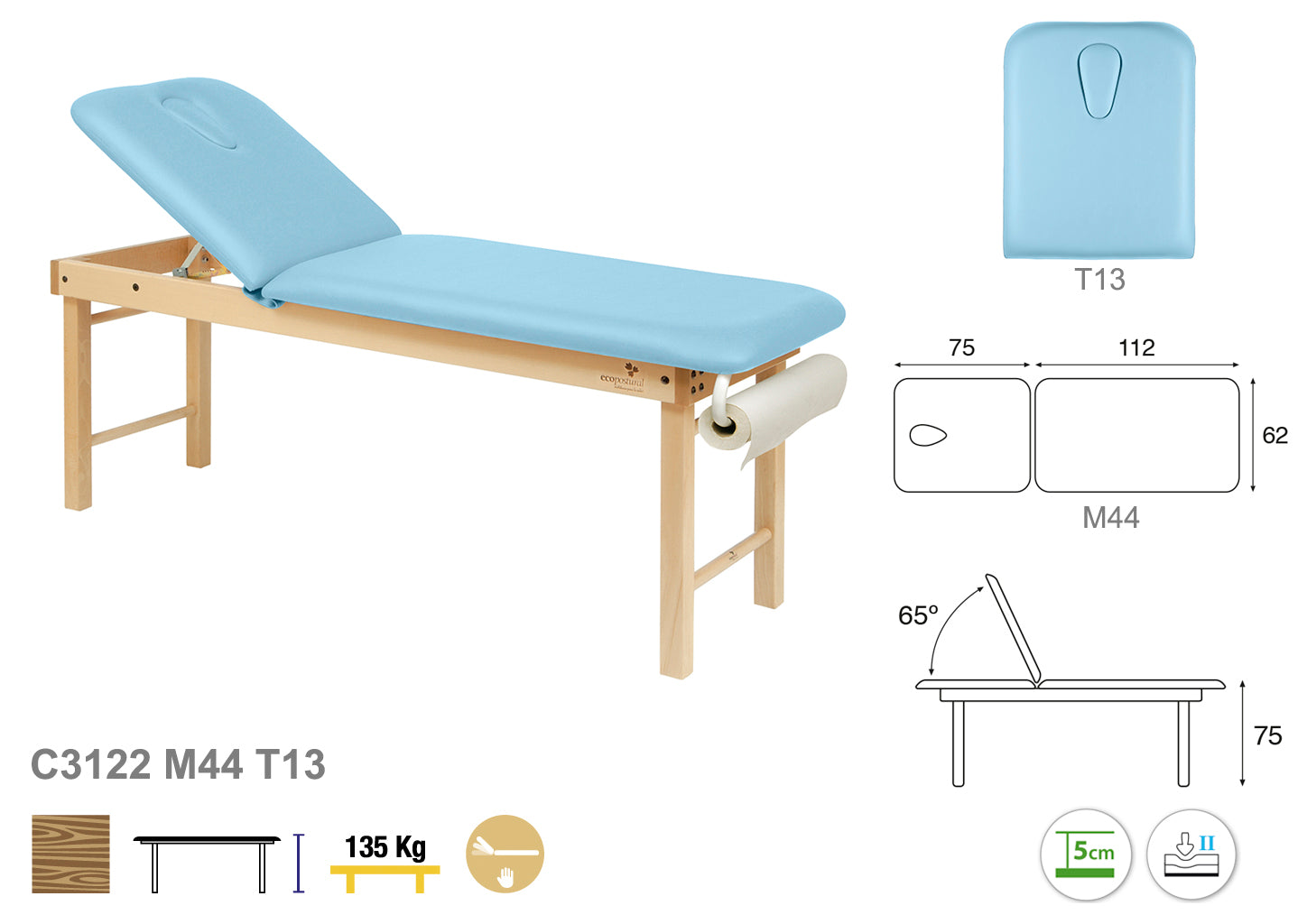 La Camilla Fija Ecopostural Madera Natural 2 Cuerpos - Modelo C3122 combina diseño ergonómico y materiales de alta calidad para ofrecer un soporte óptimo durante tratamientos fisioterapéuticos o estéticos.