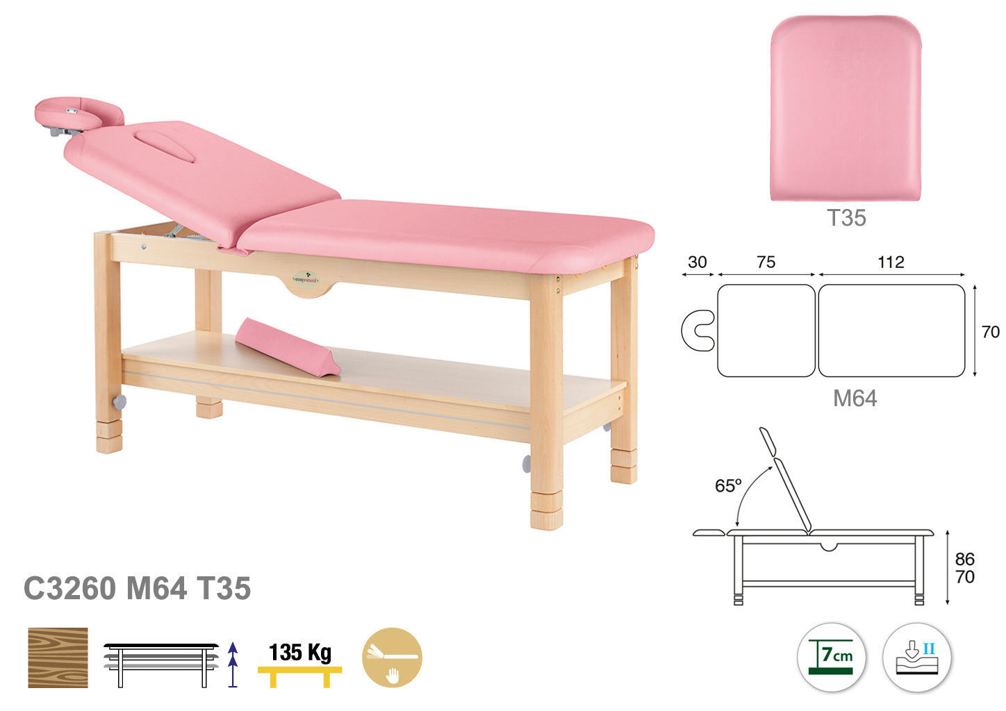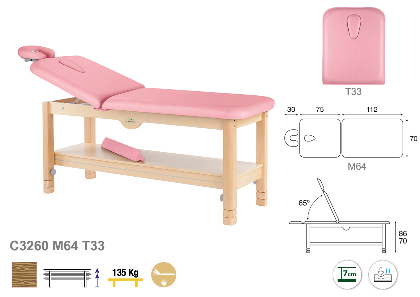 Fabricada con materiales naturales y duraderos, esta camilla facilita una postura correcta, ayudando a prevenir molestias musculares y fomentando el bienestar durante cada sesión. Ideal para clínicas, centros de rehabilitación y uso profesional.