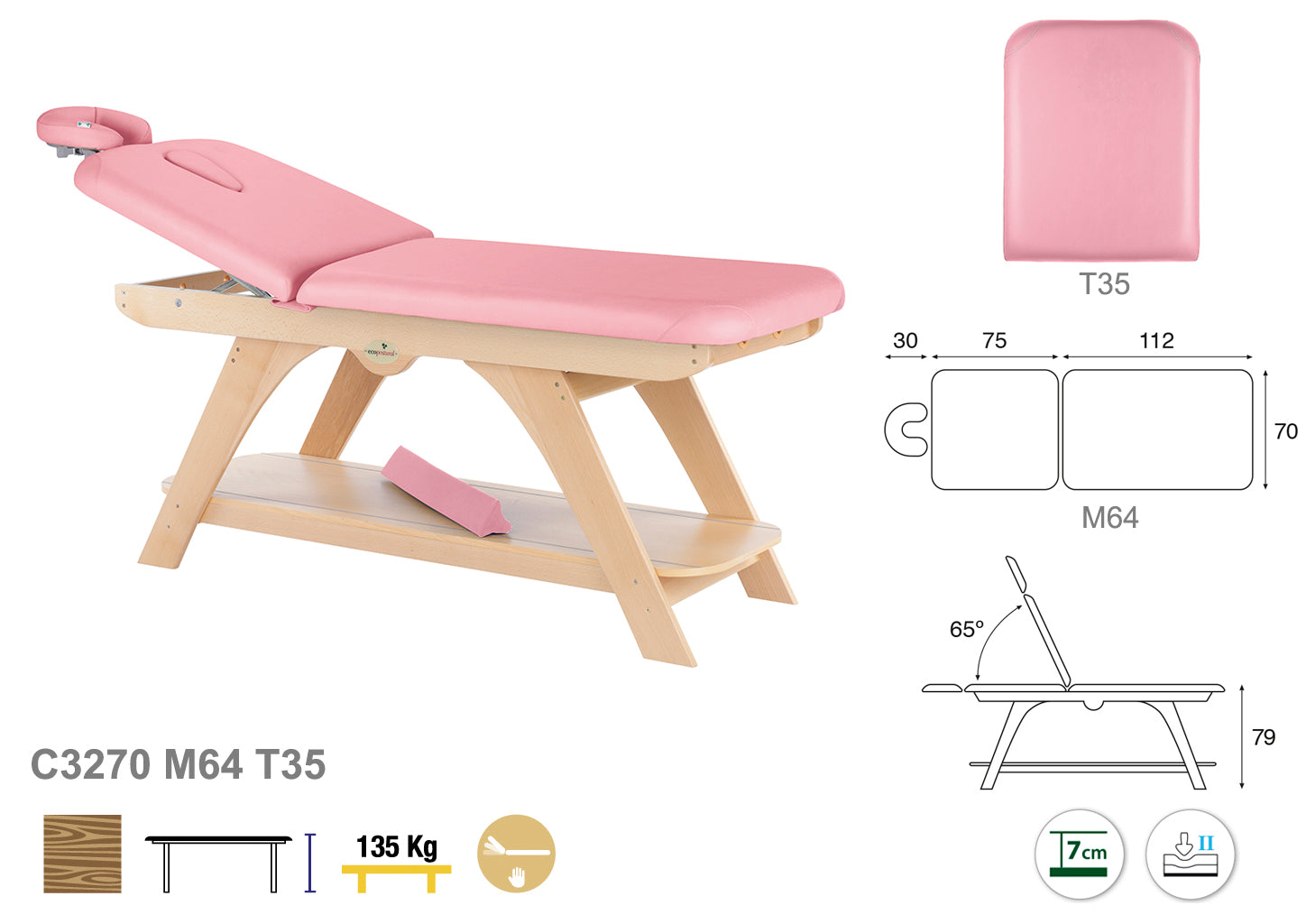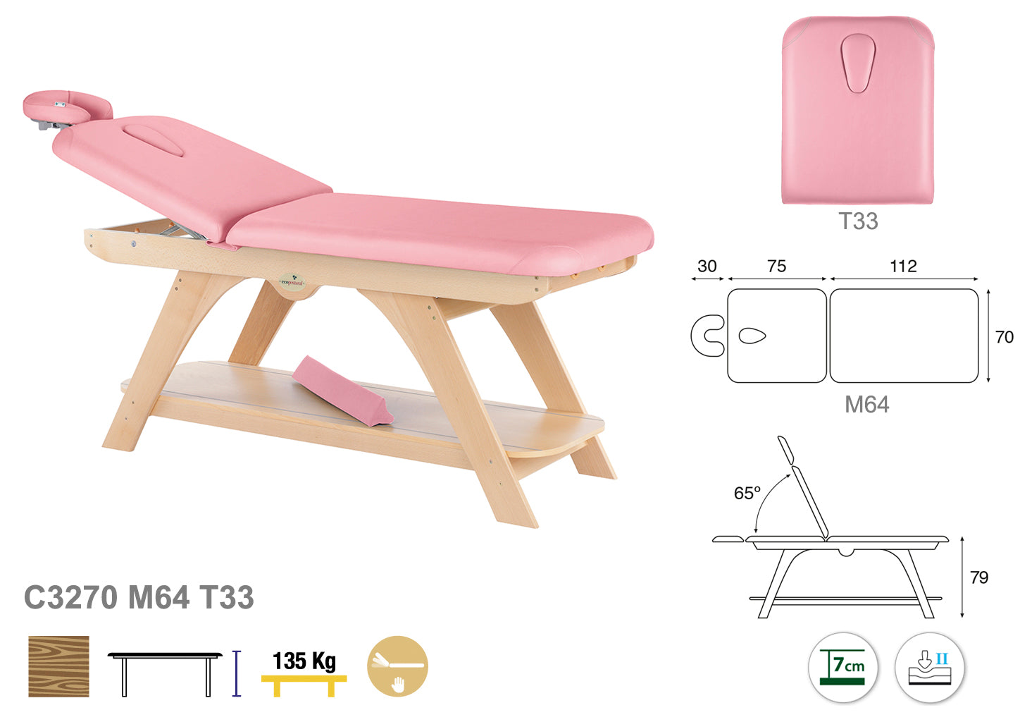 La Camilla Fija Ecopostural Madera Natural 2 Cuerpos, modelo C3270, está diseñada para ofrecer una experiencia confortable y resistente en tratamientos y terapias. Su estructura de madera natural proporciona una base sólida y estable, mientras que sus dos cuerpos facilitan un posicionado ergonómico adaptado a diferentes necesidades.