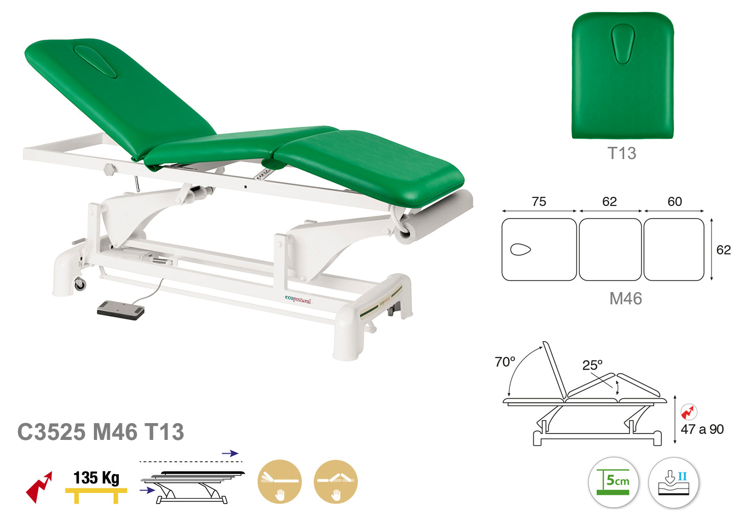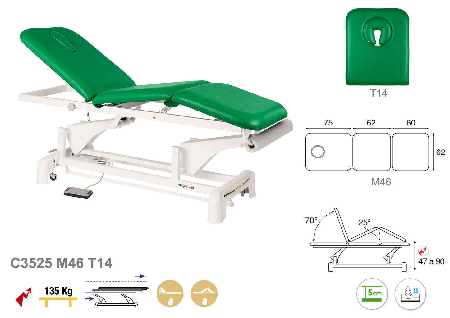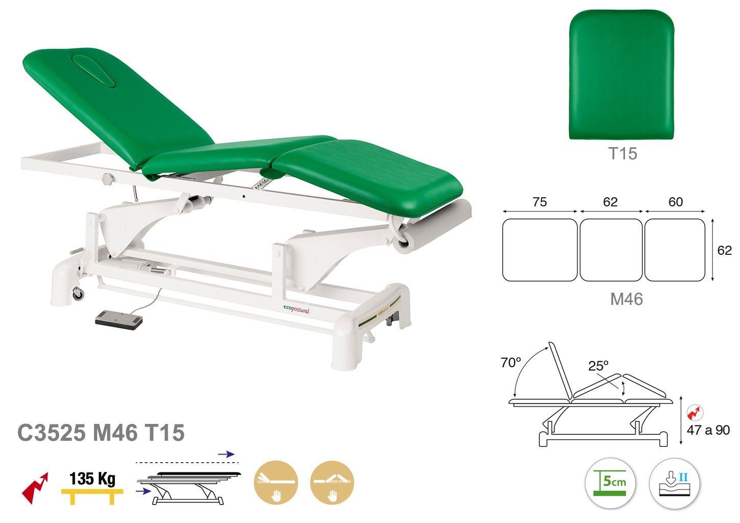 La Camilla Eléctrica Ecopostural Biela Blanca 3 Cuerpos, modelo C3525, está diseñada para ofrecer un apoyo cómodo y seguro durante las sesiones de tratamiento. Sus tres cuerpos ajustables permiten adaptar la posición con facilidad gracias a su sistema eléctrico, facilitando el trabajo del profesional y mejorando la experiencia del paciente.