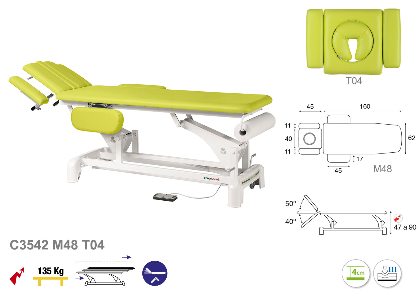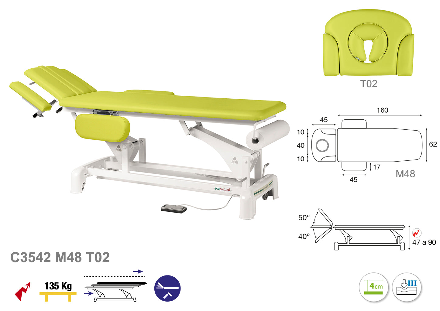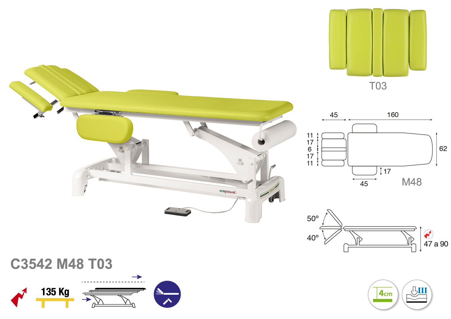 La Camilla Eléctrica Ecopostural Biela Blanca Técnica, con medidas de 62x207 cm, modelo C3542, está diseñada para proporcionar comodidad y funcionalidad en entornos profesionales.