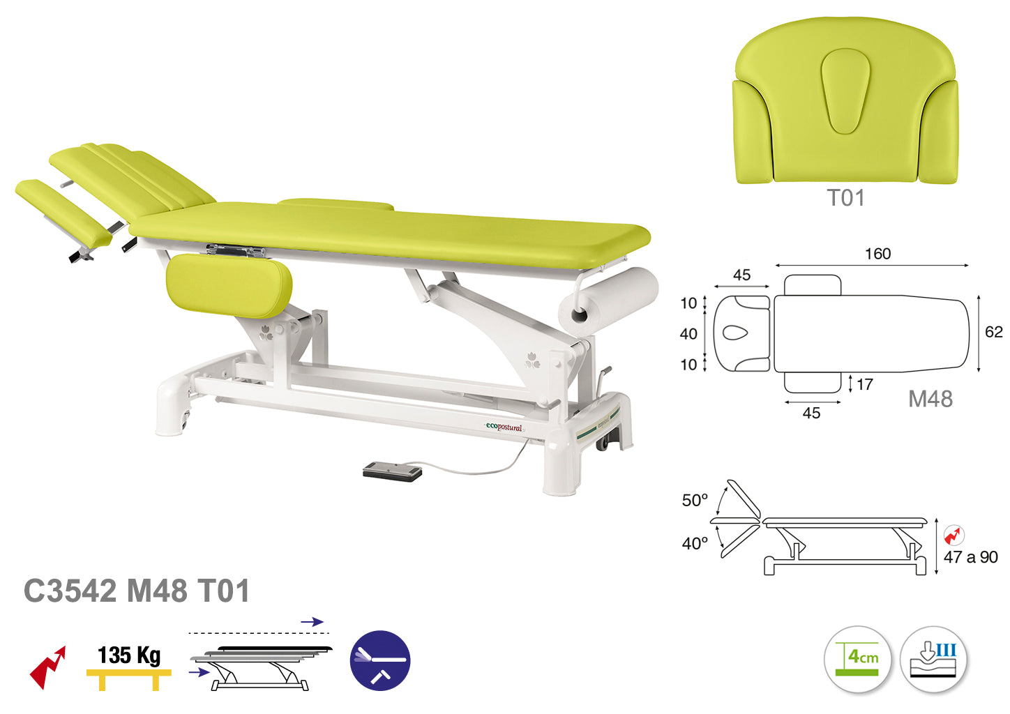Su estructura robusta y acabados en biela blanca aportan un aspecto técnico y fino, ideal para clínicas y centros especializados. Gracias a su sistema eléctrico, facilita el ajuste preciso de la posición, adaptándose a las necesidades del paciente y del profesional, lo que mejora la ergonomía y eficiencia durante los tratamientos. Esta camilla combina durabilidad y facilidad de uso para optimizar el trabajo diario.