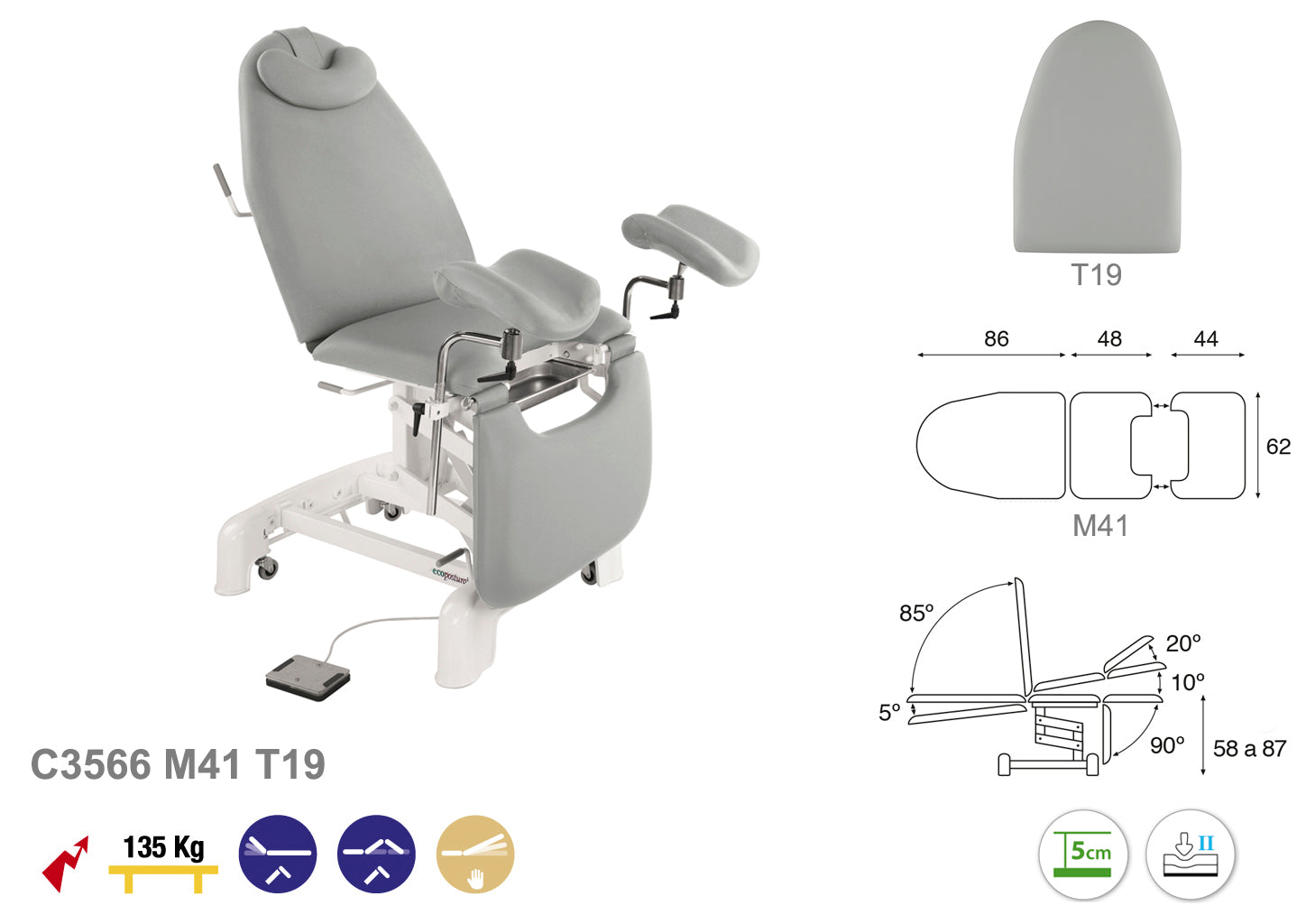 El sillón eléctrico blanco especialidades T19, con dimensiones de 62x182 cm, está diseñado para ofrecer comodidad y funcionalidad en entornos especializados. Su sistema eléctrico facilita ajustes precisos, permitiendo al usuario encontrar la posición más adecuada para su bienestar.