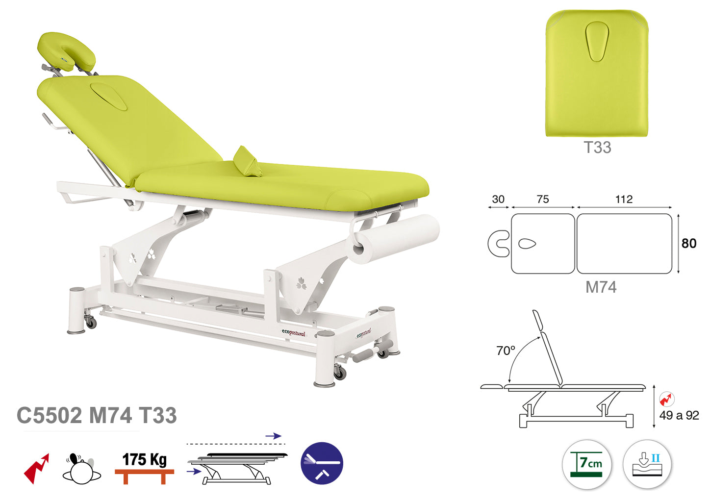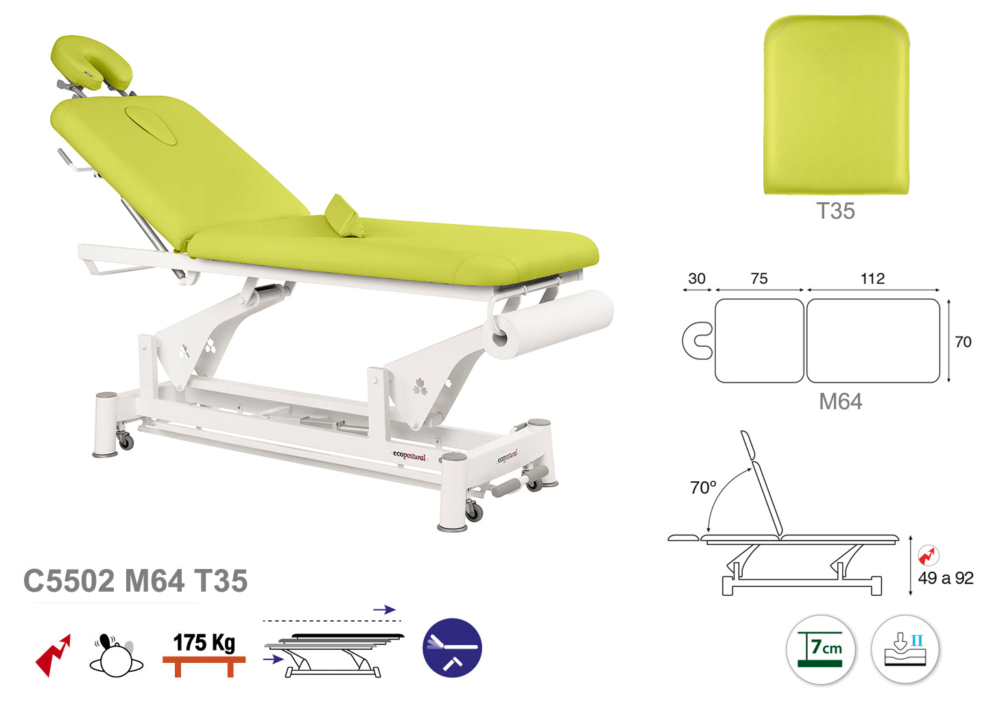 La Camilla Eléctrica Ecopostural Biela Blanca 2 Cuerpos (Modelo C5502) ofrece diversas medidas para adaptarse a las necesidades específicas de cada usuario. Su diseño eléctrico facilita ajustar la inclinación y posición de manera sencilla, brindando comodidad tanto al paciente como al terapeuta durante las sesiones.