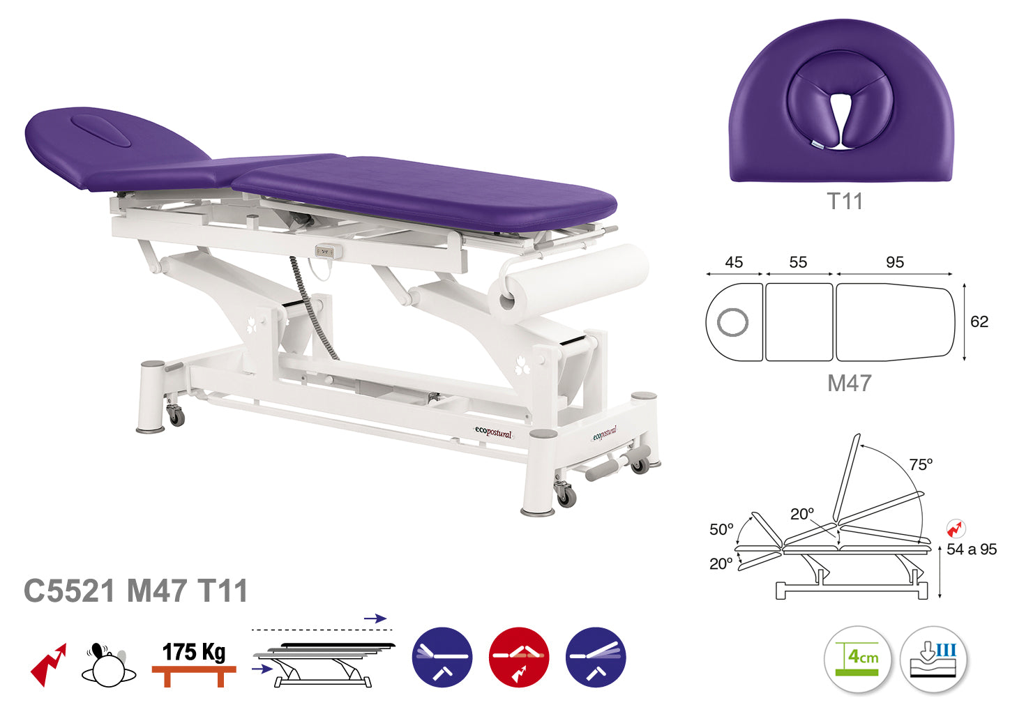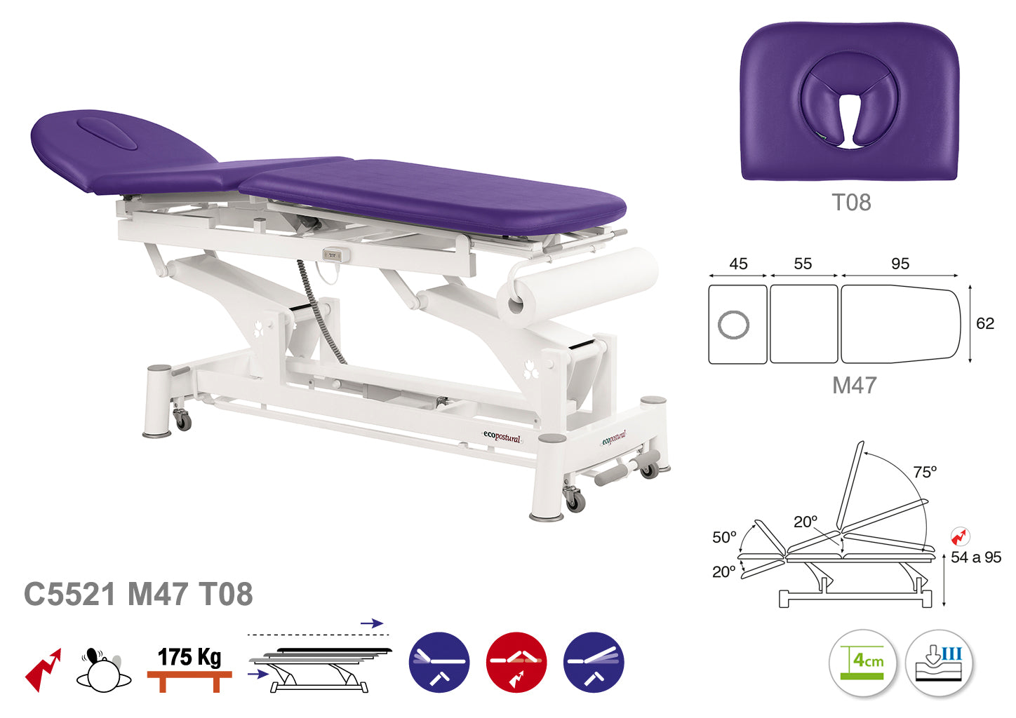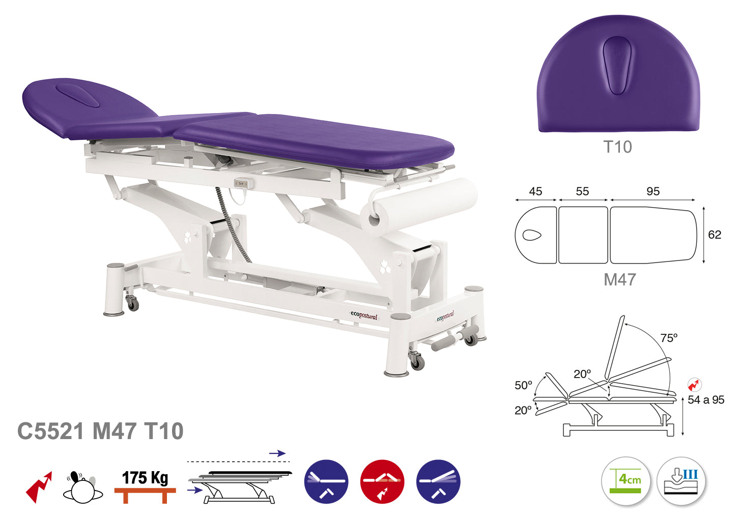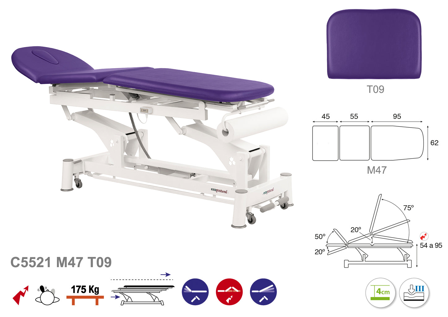 La Camilla Eléctrica Ecopostural Biela Blanca Multifuncional modelo C5521 está diseñada para ofrecer máxima comodidad y funcionalidad en entornos profesionales de salud y bienestar.
