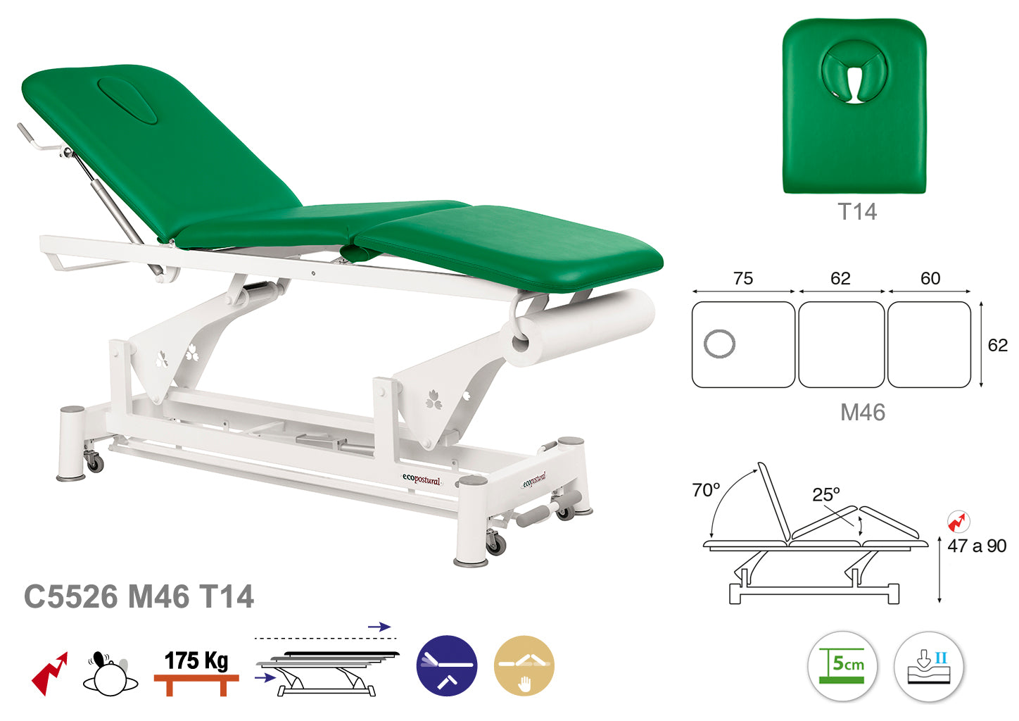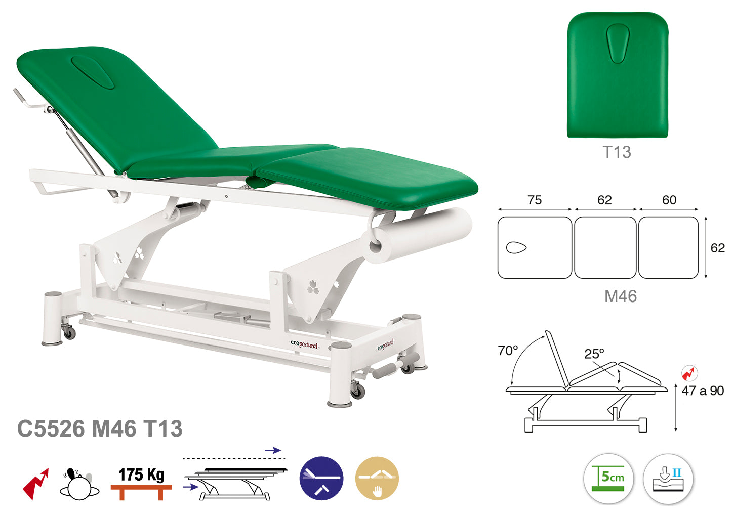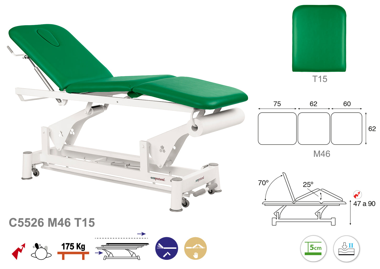 La Camilla Eléctrica Ecopostural Biela Blanca de 3 cuerpos, modelo C5526, está diseñada para ofrecer comodidad y funcionalidad en entornos de fisioterapia y salud. Su estructura eléctrica permite ajustar fácilmente las distintas secciones, facilitando la posición óptima para cada tratamiento o evaluación.