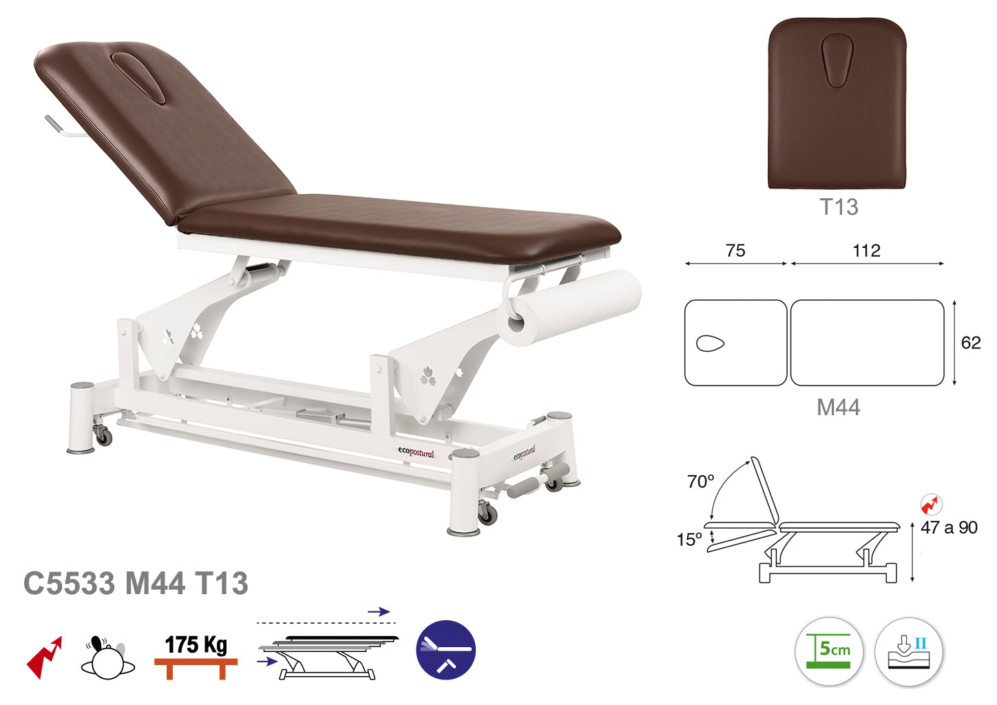 La Camilla Eléctrica Ecopostural Biela Blanca de 2 Cuerpos, modelo C5533, es una herramienta profesional diseñada para optimizar el desempeño en consultas de fisioterapia, masajes y rehabilitación. Fabricada con materiales de alta resistencia, ofrece varias medidas para adaptarse a diferentes espacios y necesidades.