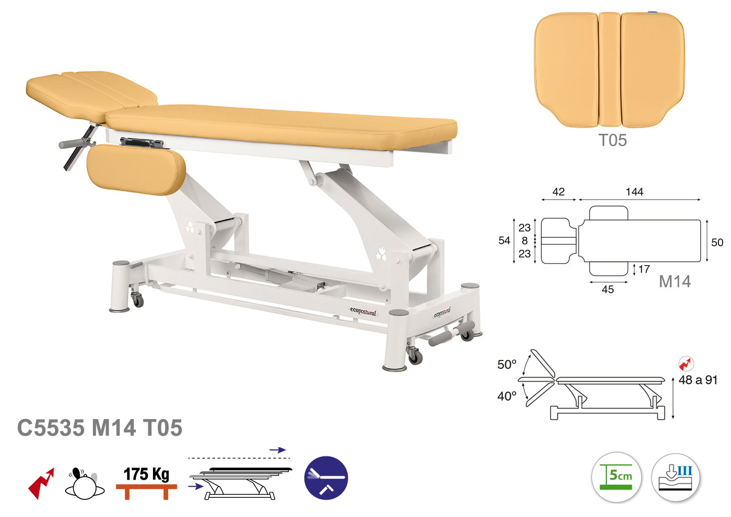 La Camilla Eléctrica Ecopostural Biela Blanca Técnica, modelo C5535, con medidas de 50x188 cm, está diseñada para ofrecer comodidad y funcionalidad en entornos técnicos y terapéuticos.