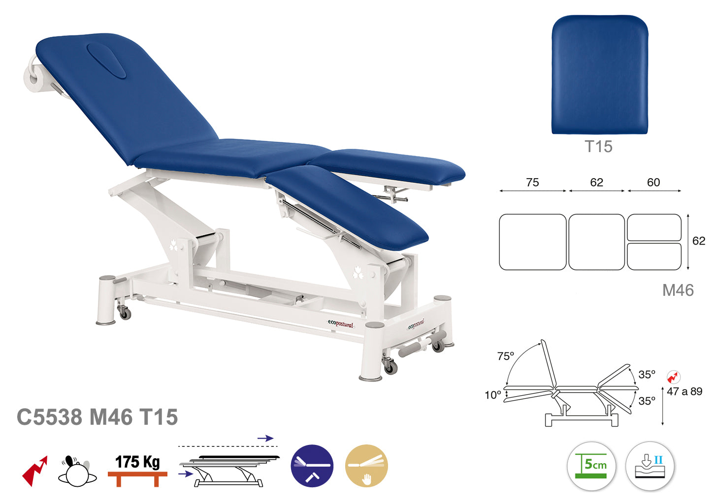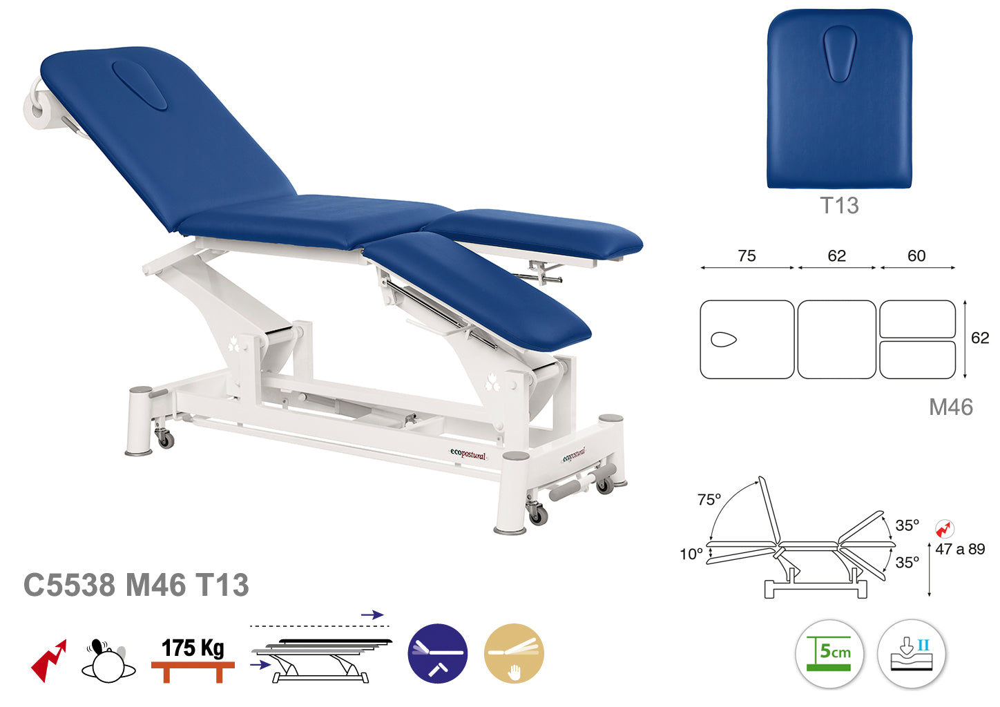 https://www.fisiomarket.com/products/20190-camilla-electrica-ecopostural-biela-blanca-especialidades-c55389017290129667Camilla Eléctrica Ecopostural Biela Blanca Especialidades - C5538La Camilla Eléctrica Ecopostural Biela Blanca Especialidades modelo C5538 está diseñada para ofrecer comodidad y funcionalidad en entornos profesionales de fisioterapia y rehabilitación. Su sistema eléctrico facilita ajustes precisos en altura y posición, permitiendo al terapeuta adaptar la camilla según las necesidades específicas del paciente sin esfuerzo.