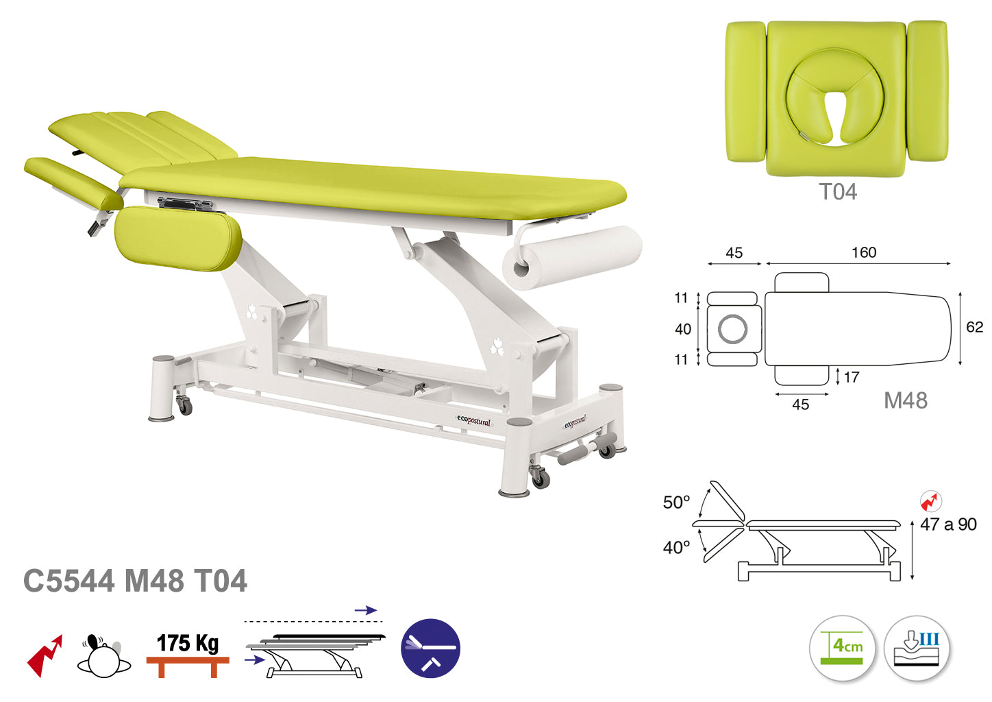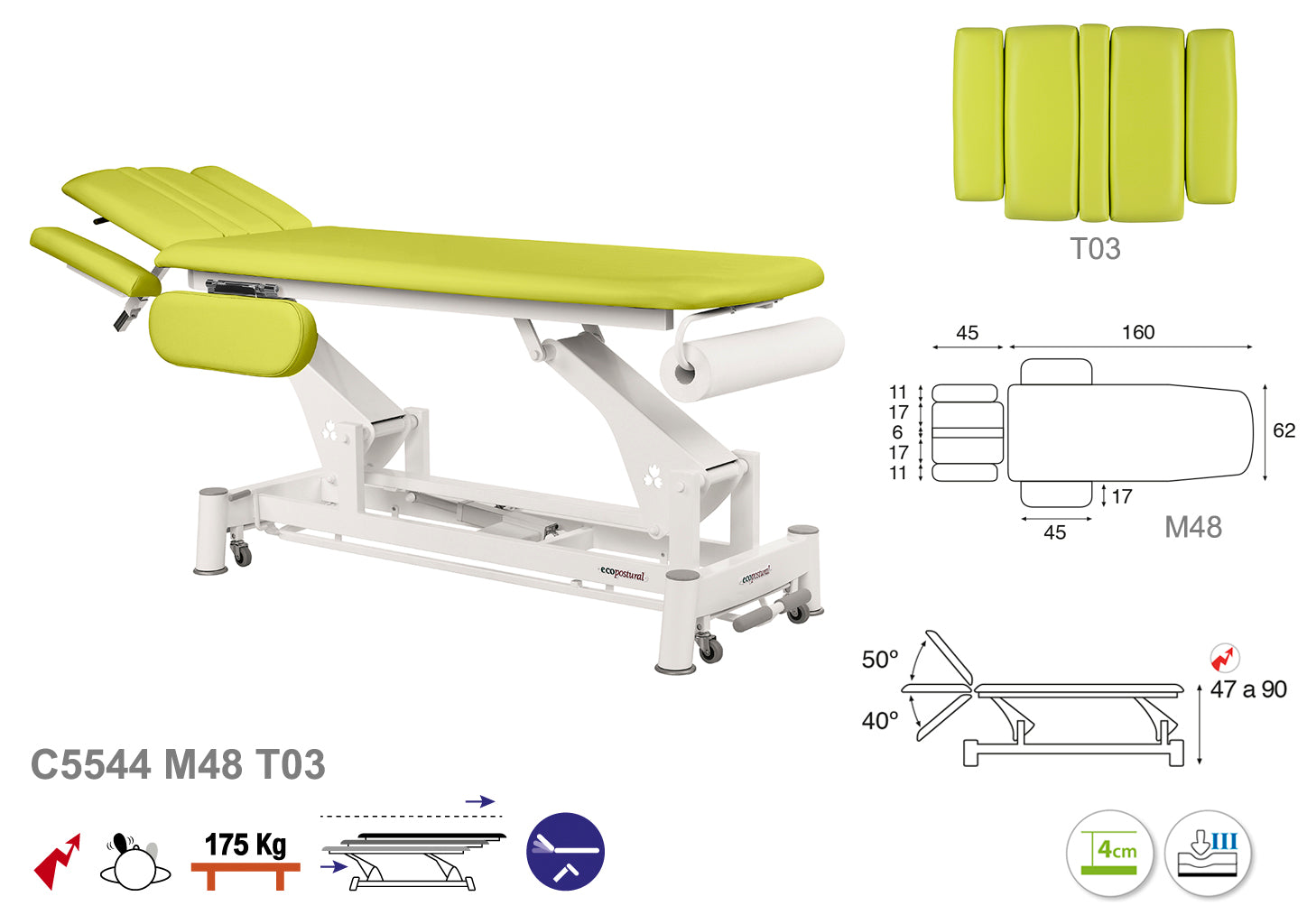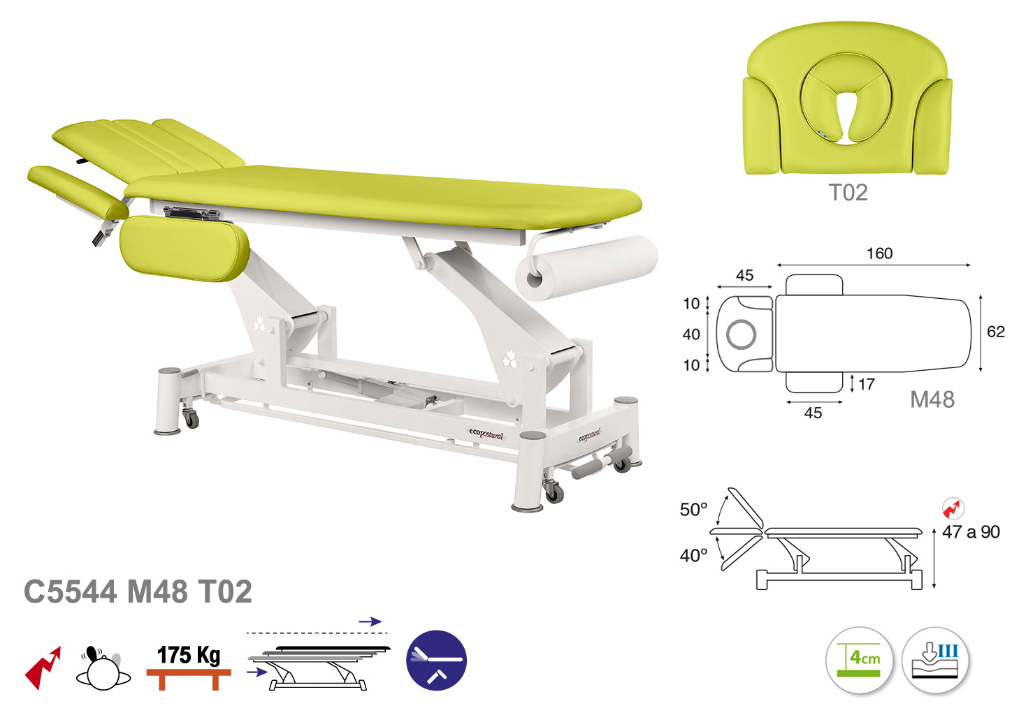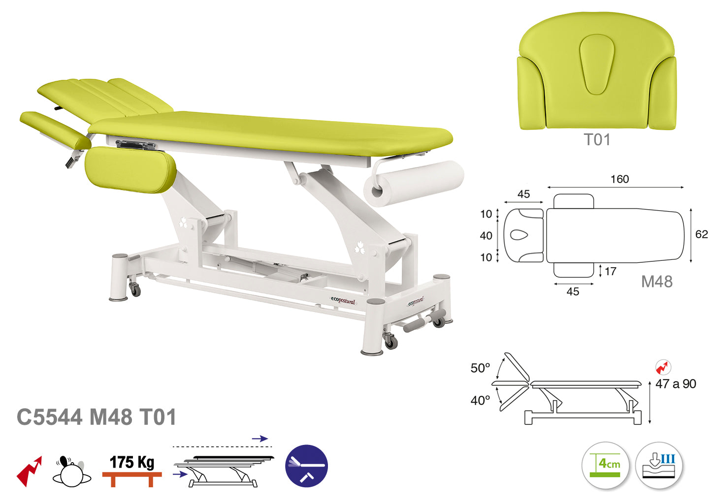 Gracias a su sistema eléctrico, permite ajustes sencillos y precisos con solo un botón, optimizando la eficiencia del terapeuta y reduciendo el esfuerzo físico. Un equipo confiable para espacios técnicos donde la calidad y funcionalidad son prioritarias.