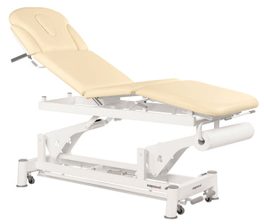 Su sistema eléctrico facilita el ajuste de la posición, permitiendo un trabajo más eficiente y seguro tanto para el profesional como para el paciente. La estructura resistente y su acabado en biela blanca aseguran durabilidad y estabilidad durante su uso. Ideal para entornos clínicos que requieren mobiliario confiable y ergonómico, esta camilla mejora la experiencia terapéutica mediante su funcionalidad avanzada y diseño pensado en la comodidad.
