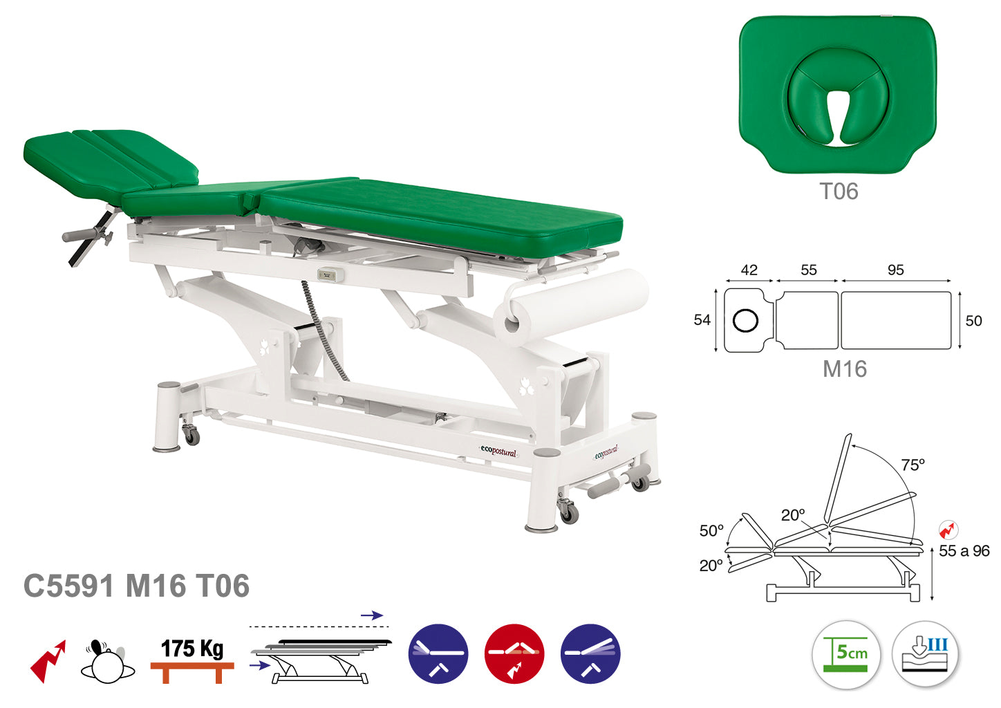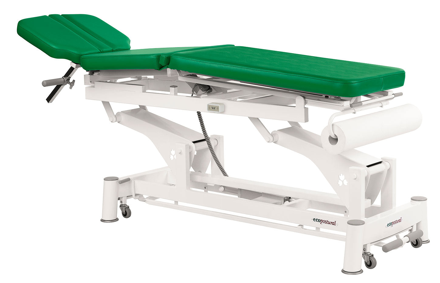 La Camilla Eléctrica Ecopostural Biela Blanca Multifuncional, modelo C5591, con unas medidas de 50x198 cm, está diseñada para adaptarse a diversas necesidades terapéuticas y de rehabilitación.