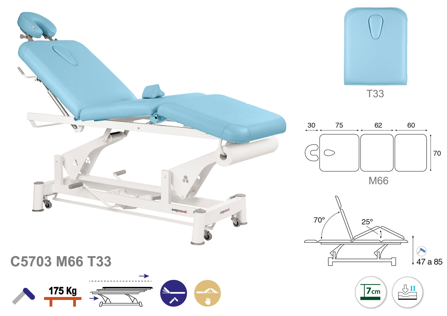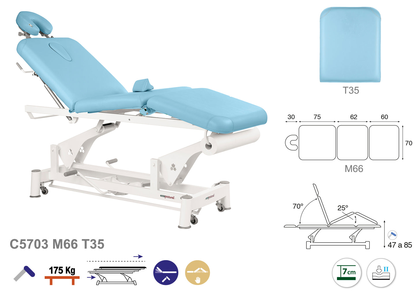 La Camilla Hidráulica Ecopostural Biela Blanca 3 Cuerpos, modelo C5703, es una opción versátil y confiable para consultas y tratamientos. Disponible en varias medidas, esta camilla ofrece un diseño ergonómico con tres cuerpos ajustables que facilitan una postura cómoda para el paciente y un acceso óptimo para el profesional.