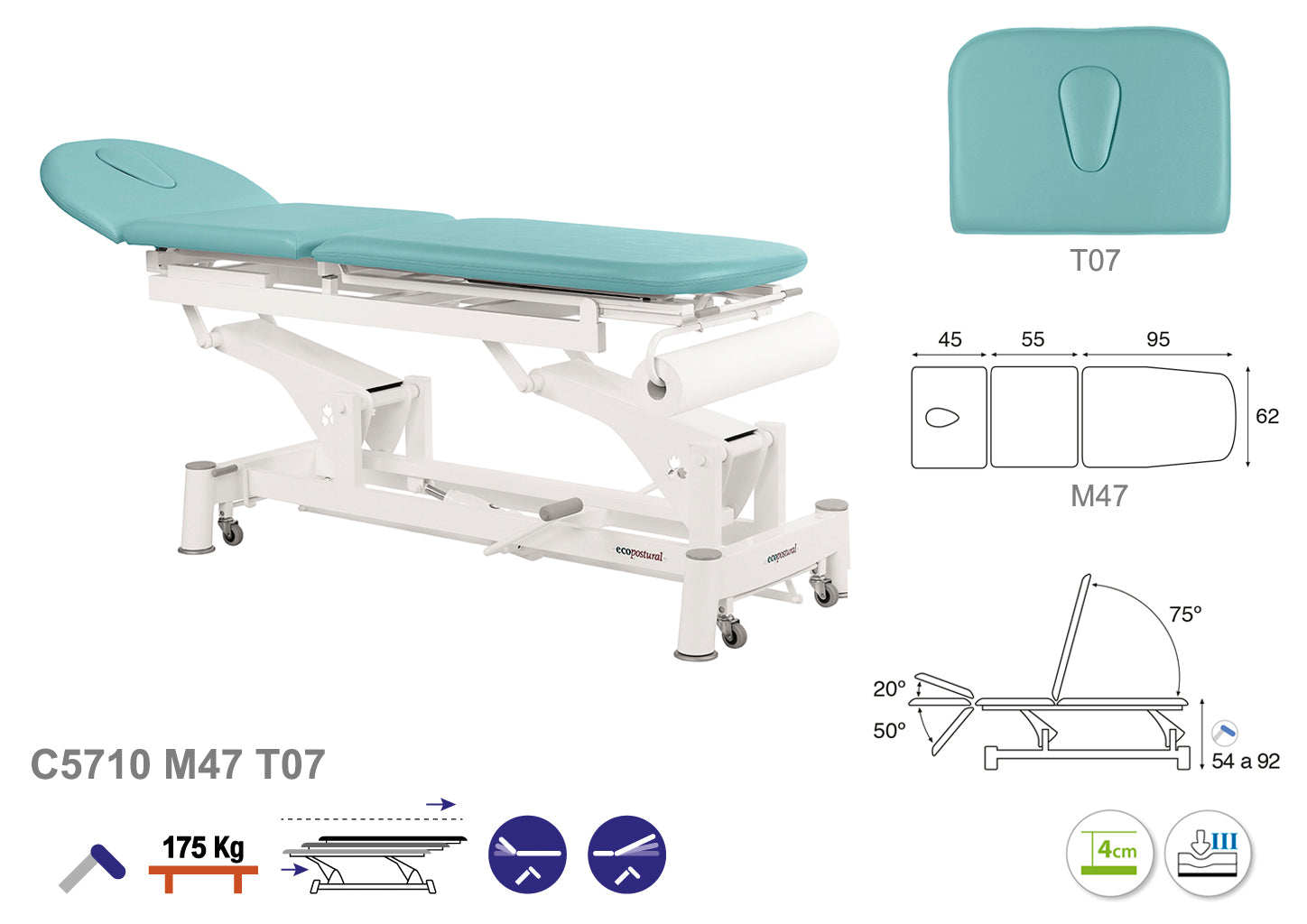 La Camilla Hidráulica Ecopostural Biela Blanca Técnica, modelo C5710, está diseñada para ofrecer una elevada funcionalidad y comodidad en el entorno clínico o terapéutico. Su sistema hidráulico permite ajustar la altura de forma suave y precisa, facilitando el trabajo del profesional y mejorando la experiencia del paciente.