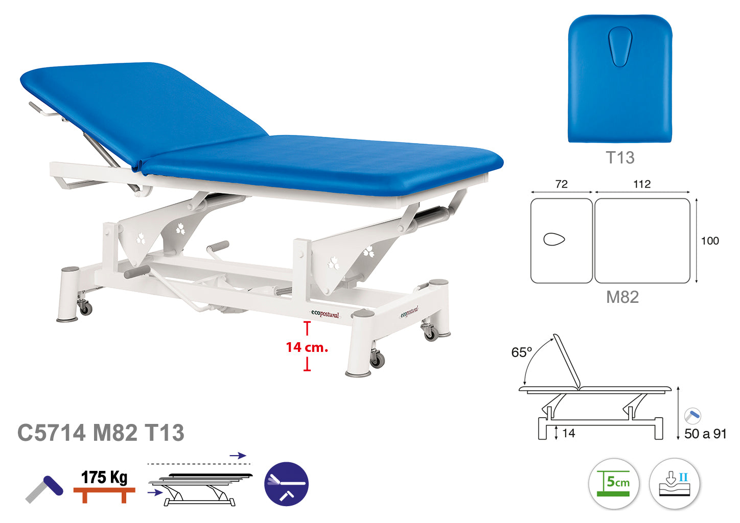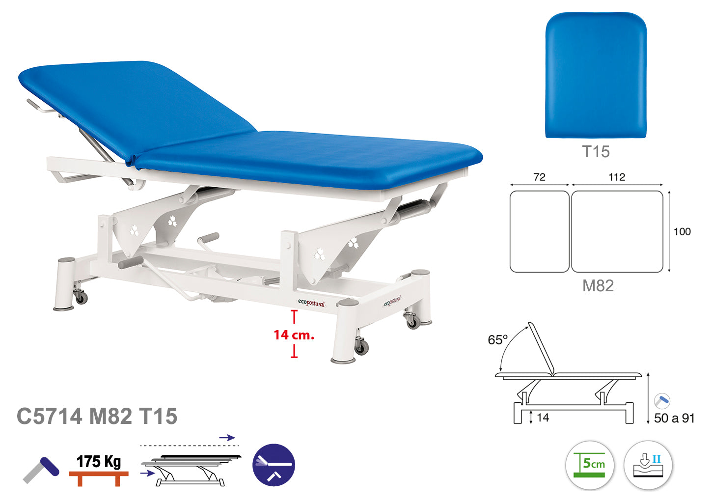 La Camilla Hidráulica Ecopostural Biela Blanca Especialidades - C5714 es una solución versátil diseñada para brindar comodidad y funcionalidad en entornos terapéuticos y clínicos.