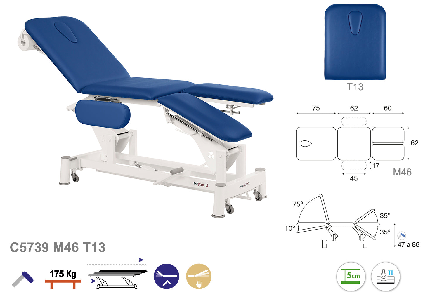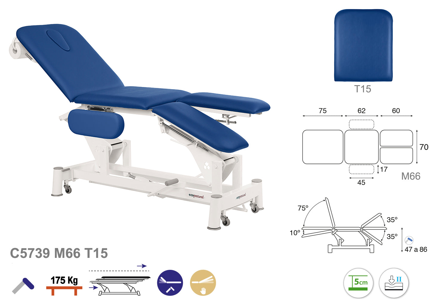 La Camilla Hidráulica Ecopostural Biela Blanca Especialidades, modelo C5739, está diseñada para ofrecer un soporte ergonómico óptimo durante tratamientos fisioterapéuticos y médicos.