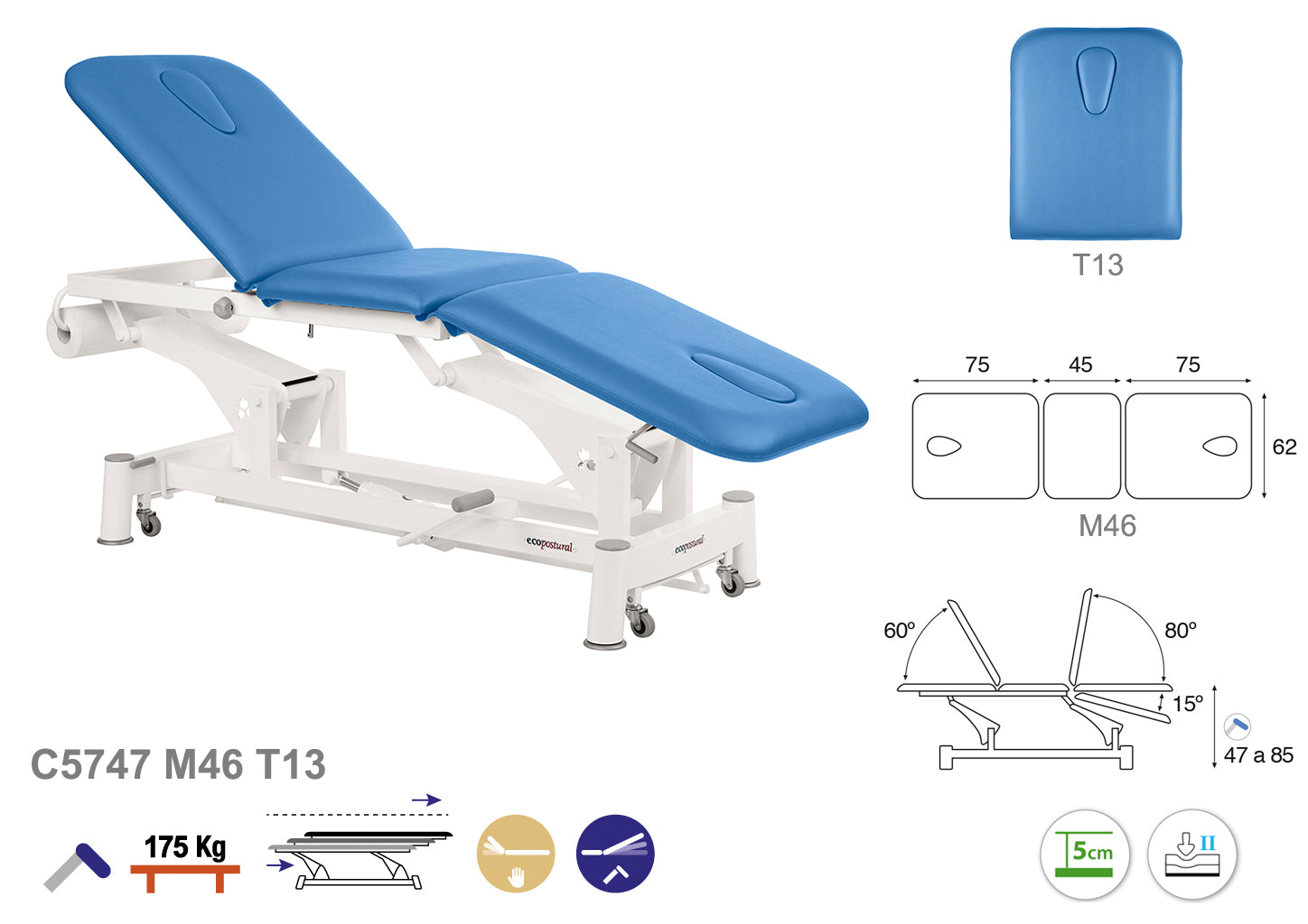La Camilla Hidráulica Ecopostural Biela Blanca de 3 cuerpos ofrece una solución versátil y cómoda para tratamientos de fisioterapia y masaje. Cuenta con un diseño ergonómico que facilita la postura tanto del paciente como del profesional. Está equipada con un tapón facial para proporcionar comodidad durante las sesiones y un portarrollos integrado para mantener el papel de camilla siempre a mano y protegido.