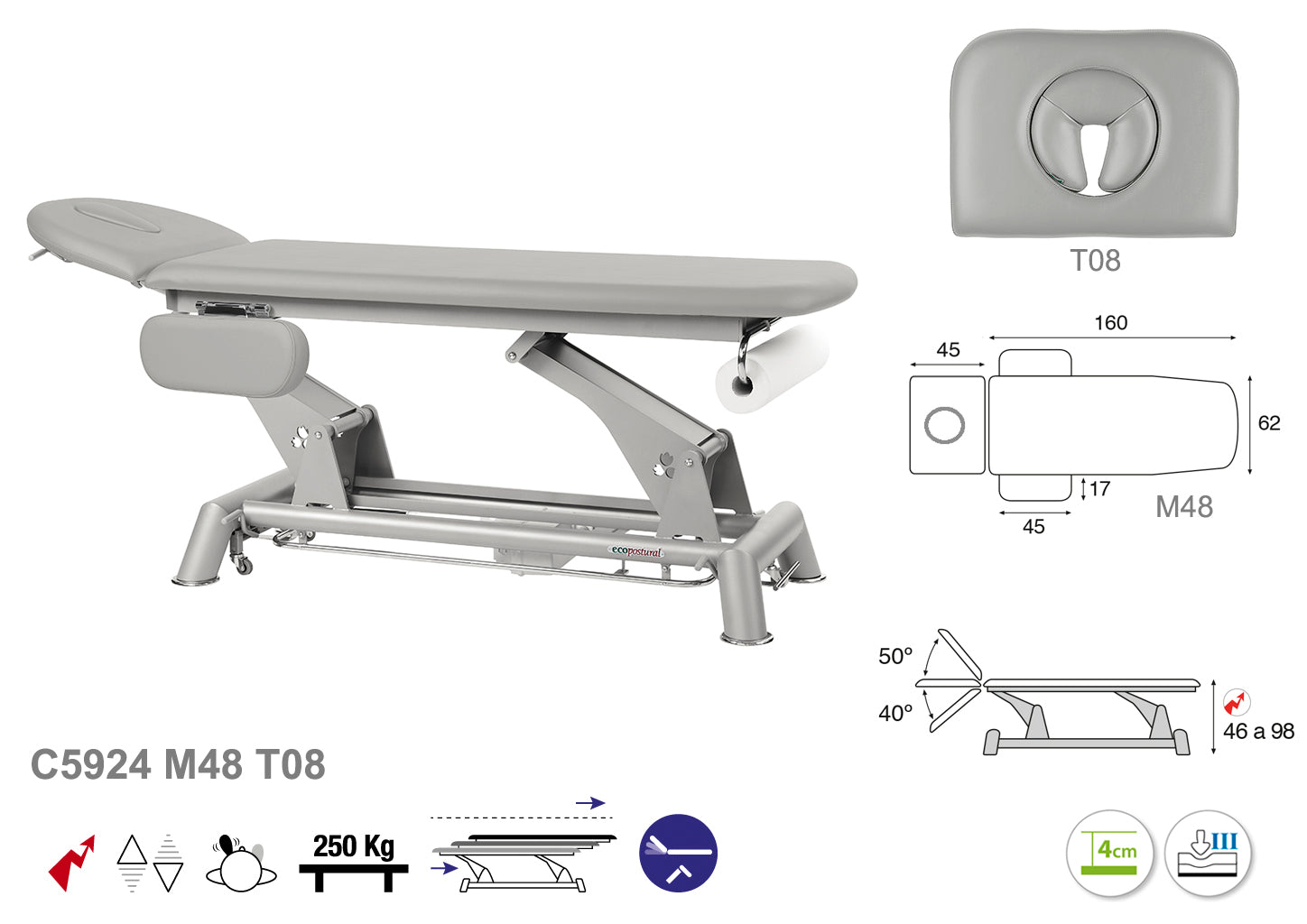 La Camilla Eléctrica Ecopostural (F) Biela Gris Técnica es una solución ideal para profesionales que buscan comodidad y funcionalidad en su espacio de trabajo. Con medidas de 62x207 cm, ofrece un amplio soporte para diversas terapias y tratamientos. Su diseño eléctrico facilita el ajuste de altura y posición, permitiendo una adaptación rápida y precisa a las necesidades del paciente y terapeuta.