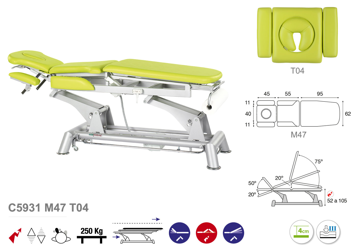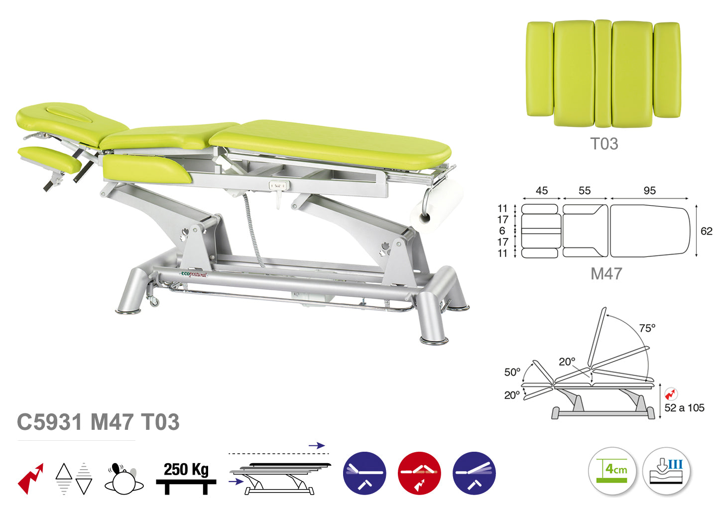 Gracias a su diseño robusto y acabado en gris biela, ofrece durabilidad y facilidad de limpieza, convirtiéndola en una opción fiable y versátil para cualquier entorno clínico o de rehabilitación. El modelo C5931 combina funcionalidad y ergonomía para optimizar cada sesión.