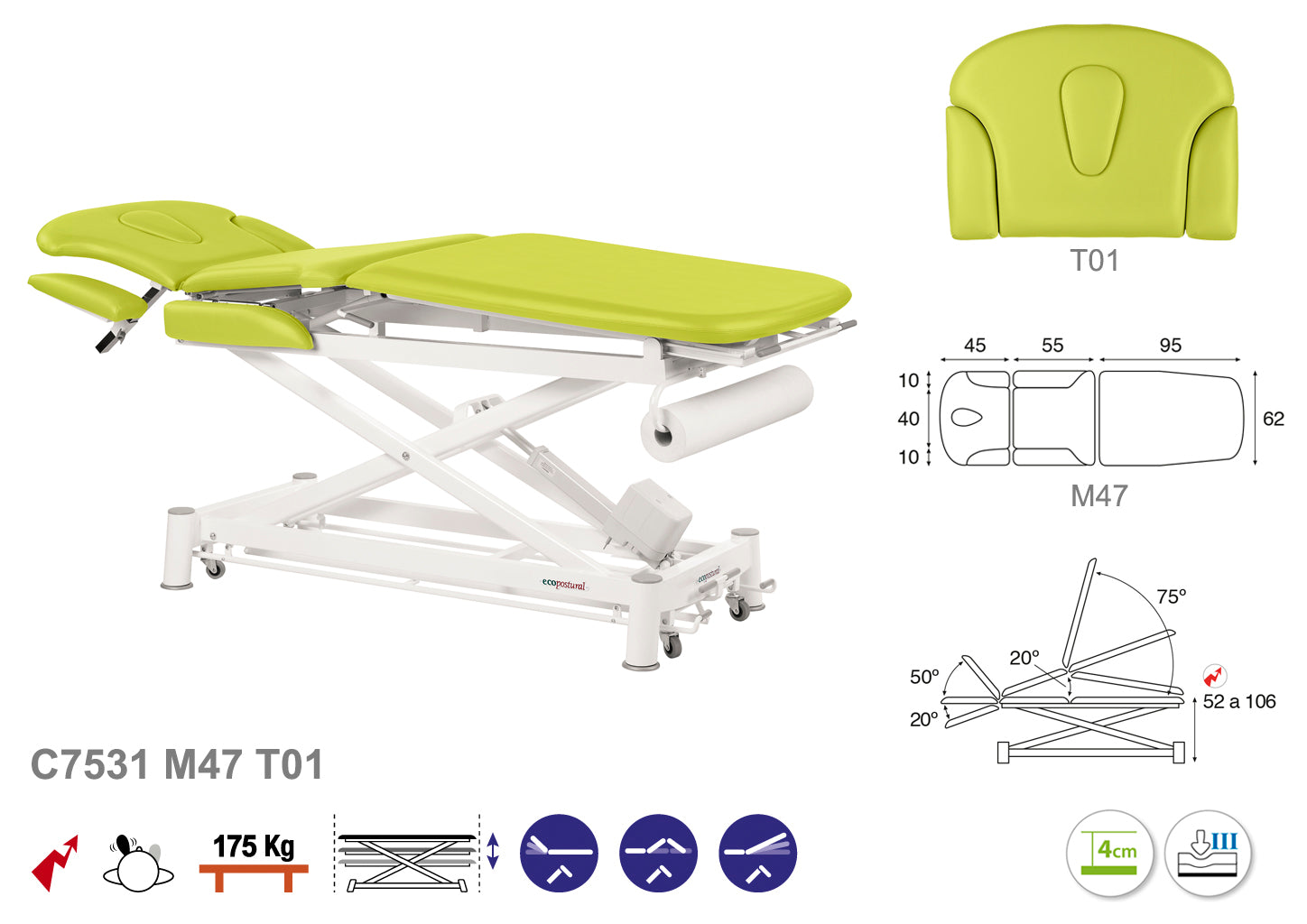 https://www.fisiomarket.com/products/20287-camilla-electrica-ecopostural-tijera-blanca-multifuncional-62x200-c75319017295274243Camilla Eléctrica Ecopostural Tijera Blanca Multifuncional - 62x200 - C7531La Camilla Eléctrica Ecopostural Tijera Blanca Multifuncional, modelo C7531, con medidas de 62x200 cm, está diseñada para ofrecer una experiencia cómoda y versátil en entornos de fisioterapia y cuidados. Su sistema eléctrico permite ajustar la posición de manera precisa y sencilla, facilitando el trabajo del profesional y mejorando la comodidad del paciente.