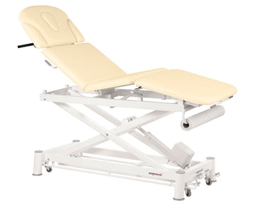 La estructura tijera proporciona estabilidad y resistencia, mientras que su acabado blanco técnico ofrece un aspecto limpio y profesional que se integra fácilmente en cualquier entorno clínico. Ideal para quienes buscan una camilla fiable que optimice el confort y la eficiencia en cada sesión.