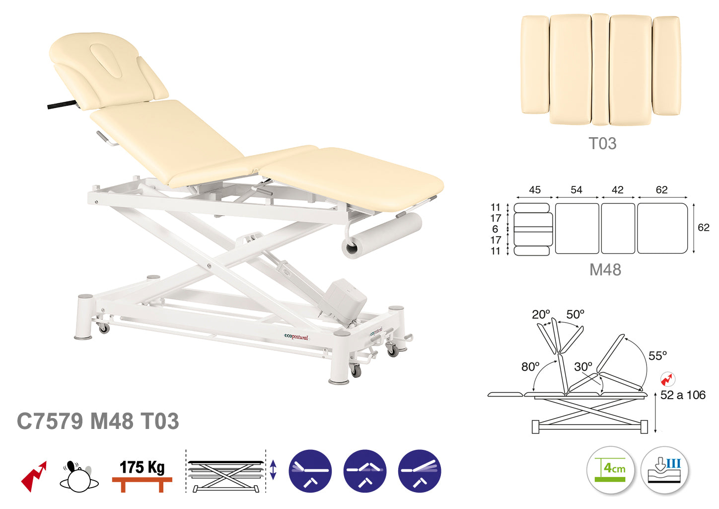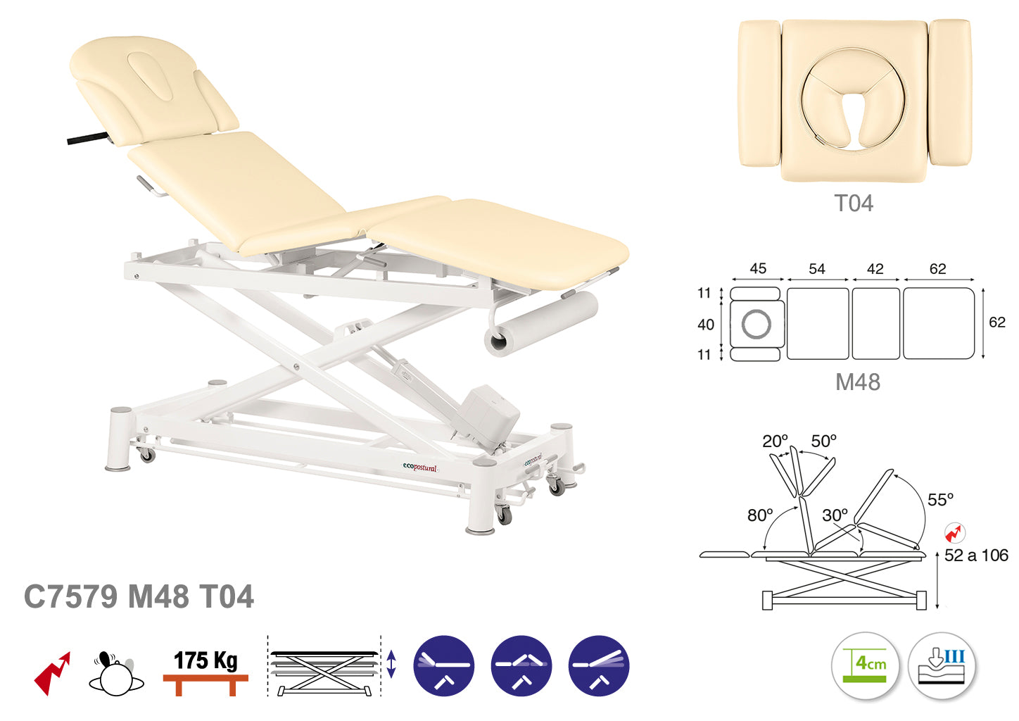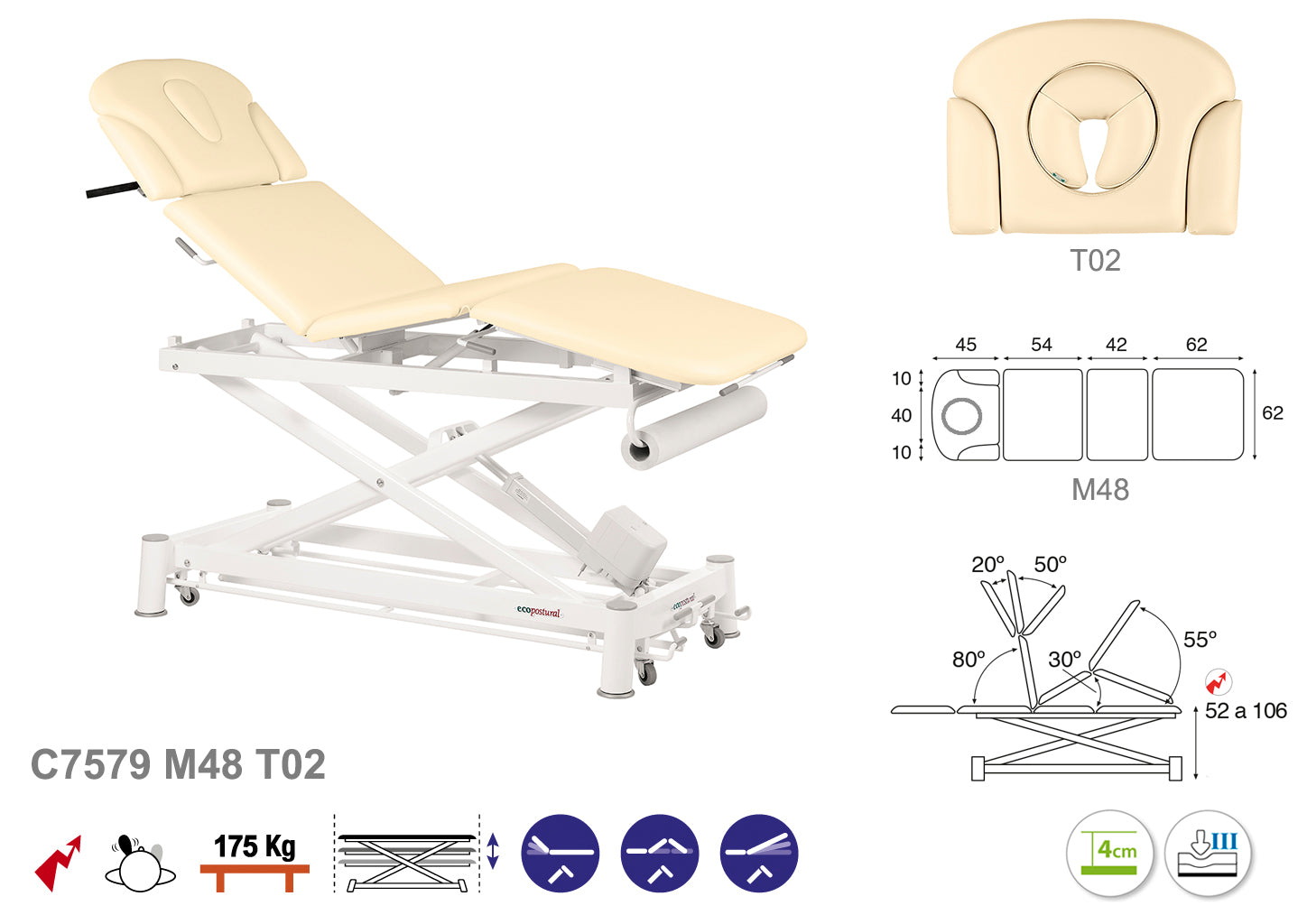 La Camilla Eléctrica Ecopostural Tijera Blanca Técnica, modelo C7579, con dimensiones de 62x207 cm, es una solución ergonómica y funcional para profesionales de la salud y la fisioterapia. Su diseño eléctrico permite ajustar la altura y posición con precisión, facilitando tratamientos cómodos y efectivos tanto para el terapeuta como para el paciente.