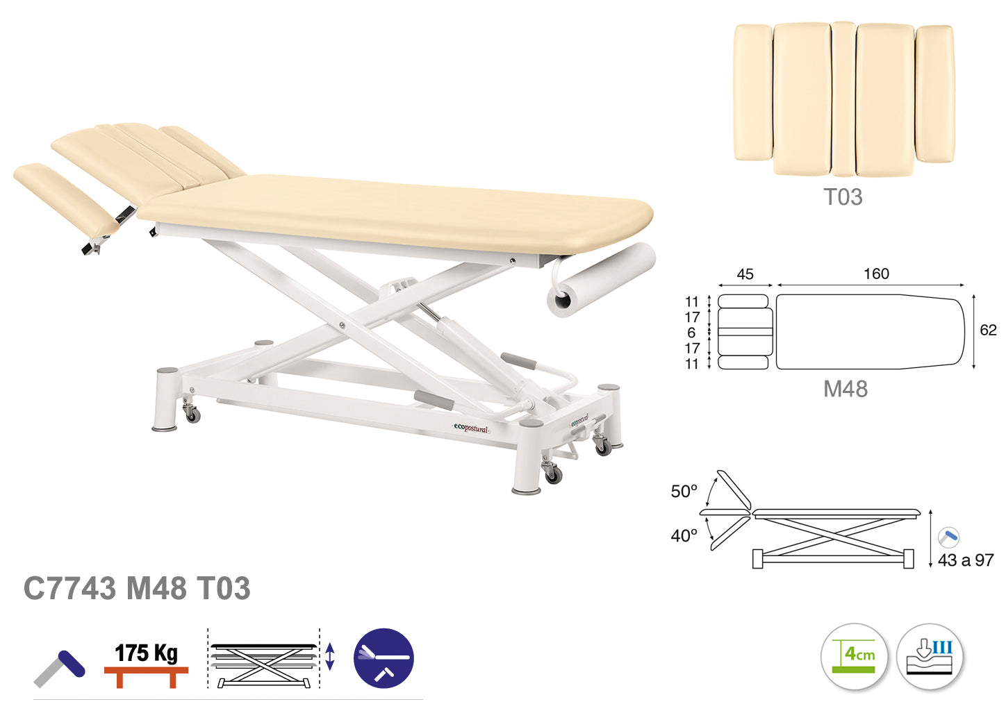Fabricada con materiales duraderos, esta camilla combina funcionalidad y confort, convirtiéndola en una herramienta indispensable para clínicas y centros especializados. El modelo C7743 aporta calidad y eficiencia al cuidado postural.