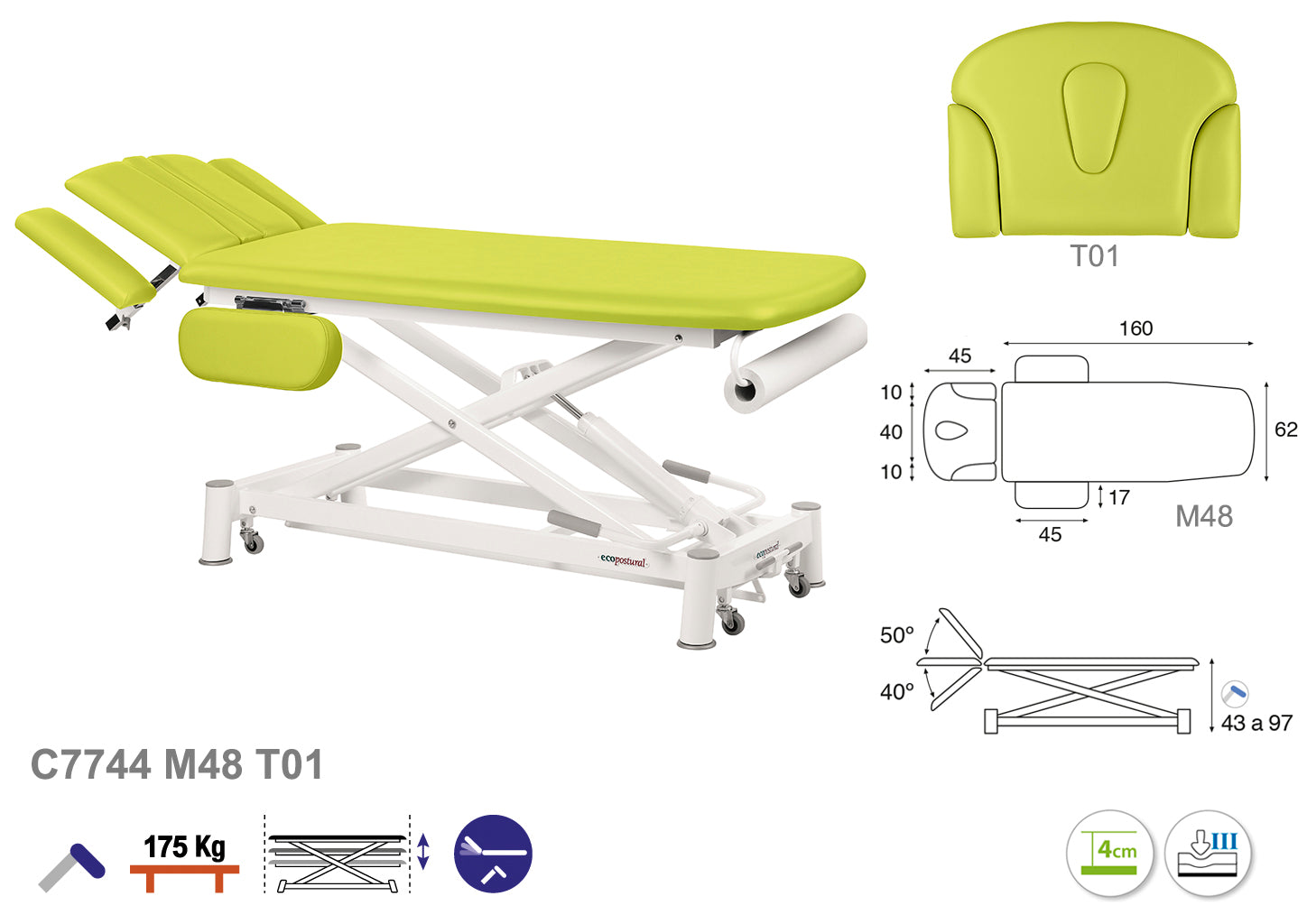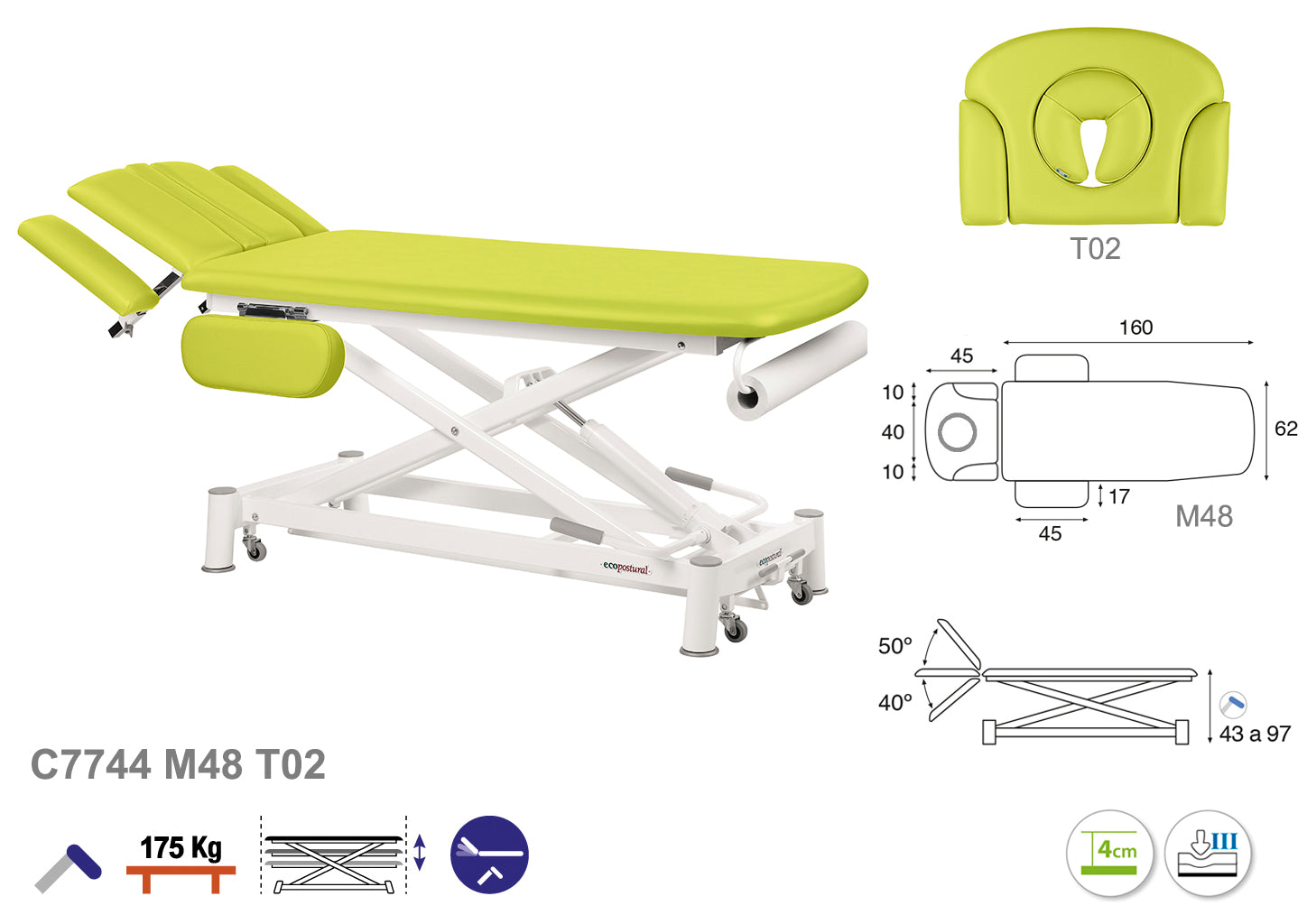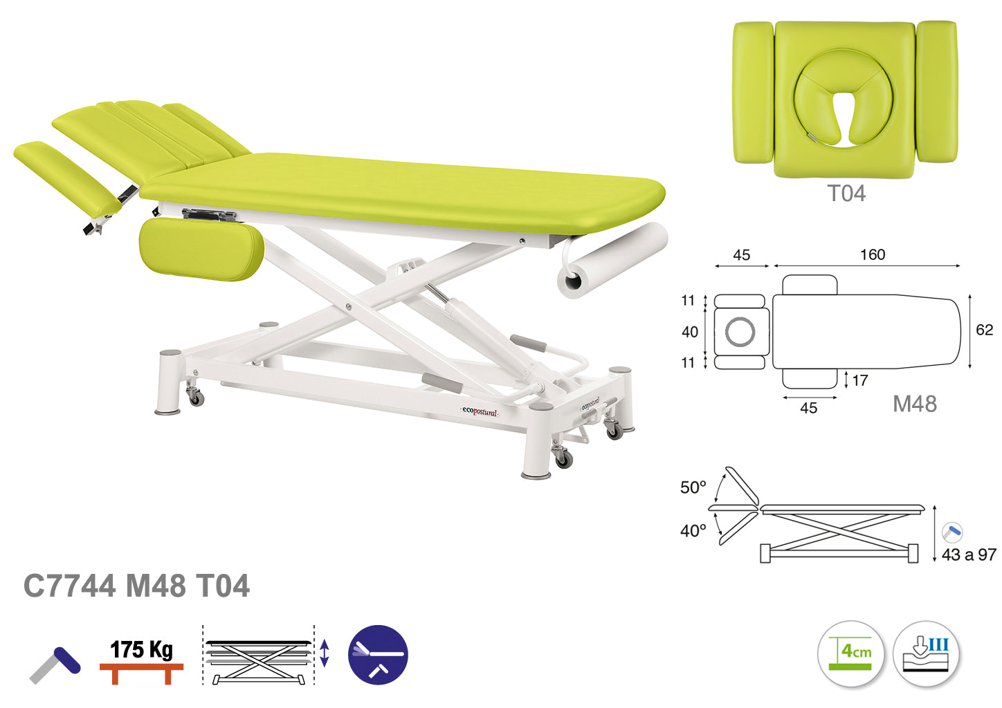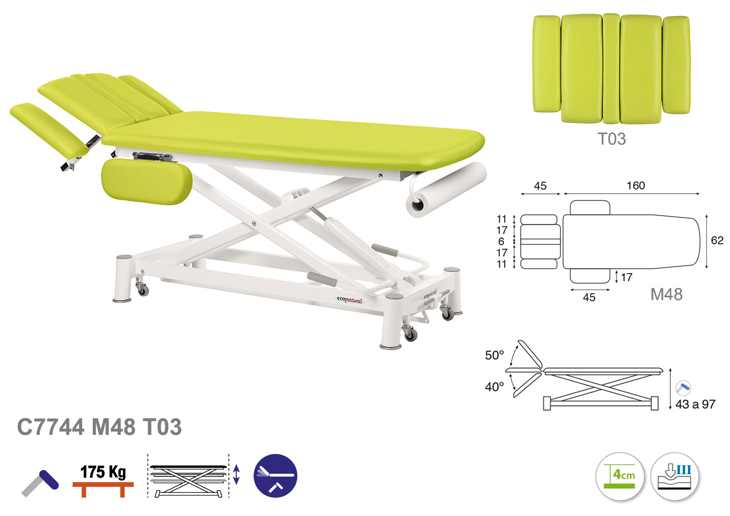La Camilla Hidráulica Ecopostural Tijera Blanca Técnica, modelo C7744, con medidas de 62x207 cm, ofrece un diseño funcional orientado a profesionales de la salud. Su sistema hidráulico facilita ajustes precisos en altura, mejorando la comodidad del terapeuta y del paciente durante las sesiones.