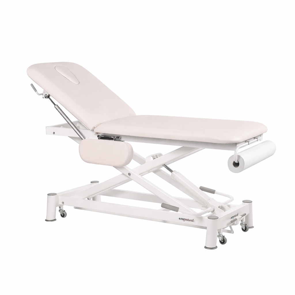 La Camilla Hidráulica Ecopostural Tijera Blanca de 2 cuerpos, modelo C7751, ofrece una solución ergonómica y eficiente para tratamientos médicos y terapéuticos. Su diseño de tijera permite ajustar la altura de forma fácil y precisa mediante un sistema hidráulico, facilitando el trabajo del profesional y mejorando la comodidad del paciente.