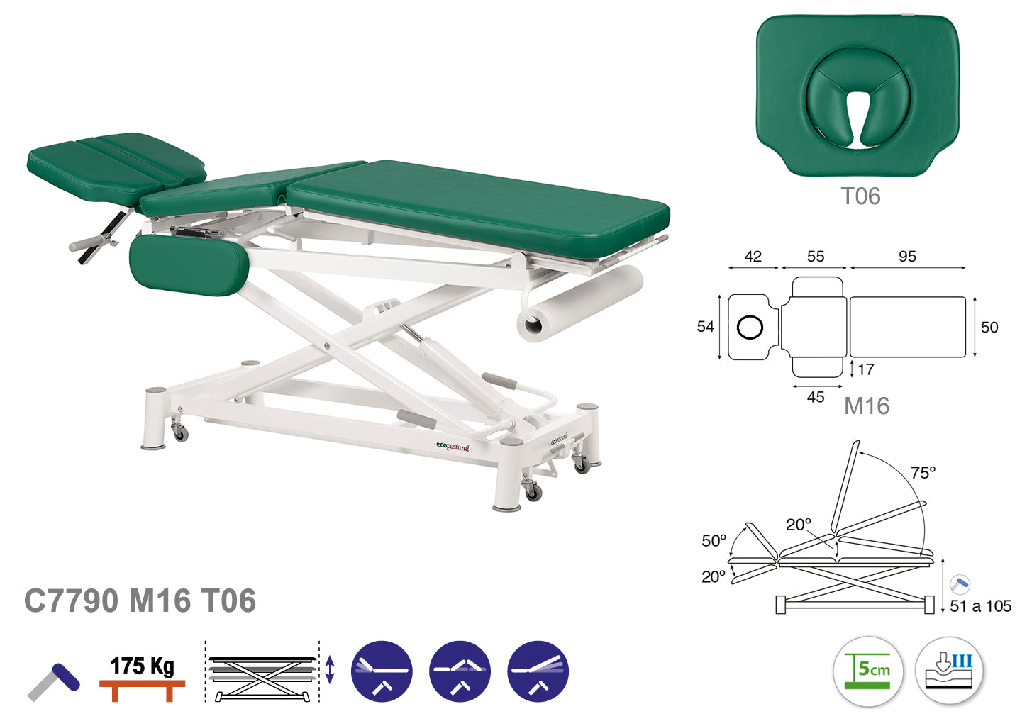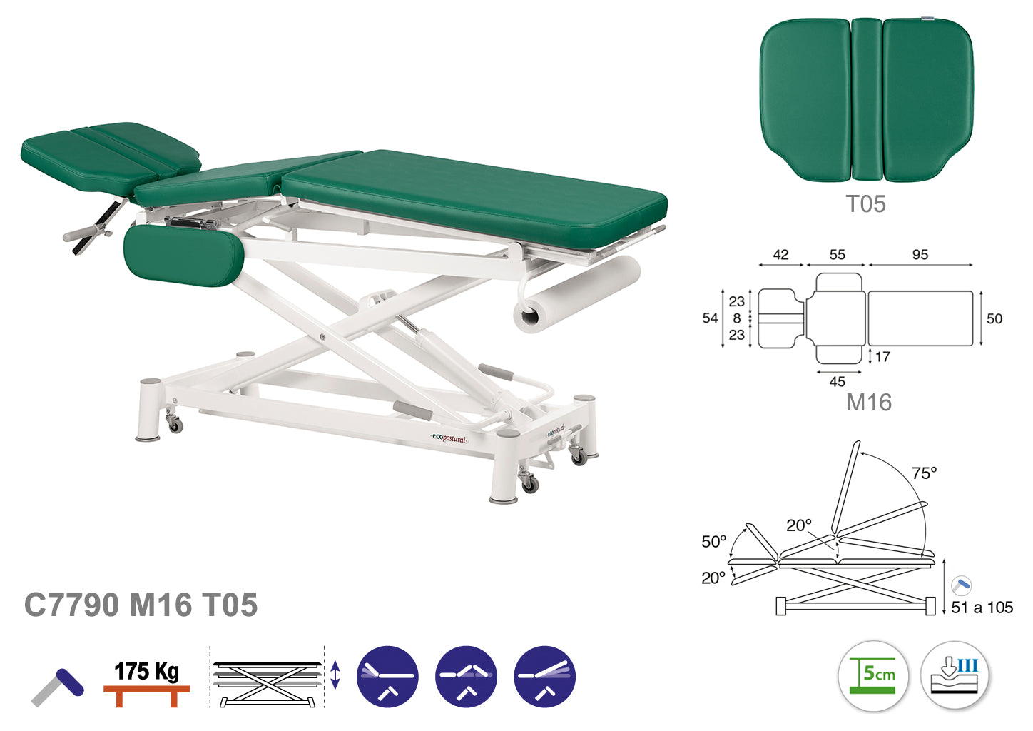 Con unas medidas de 50x198 cm, está diseñada para adaptarse a diferentes tratamientos y posiciones gracias a su sistema hidráulico que facilita los ajustes y mejora la ergonomía del usuario. Su estructura blanca aporta un aspecto limpio y profesional, mientras que su multifuncionalidad permite su uso en diversas terapias, aumentando así la eficiencia en el trato al paciente. Este modelo C7790 combina durabilidad con facilidad de manejo para optimizar cada sesión de trabajo.