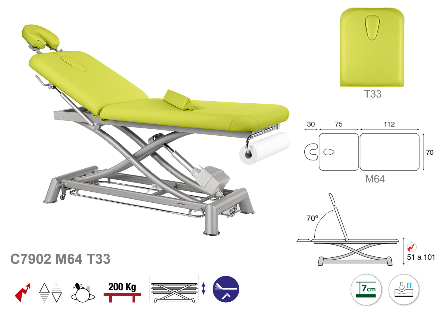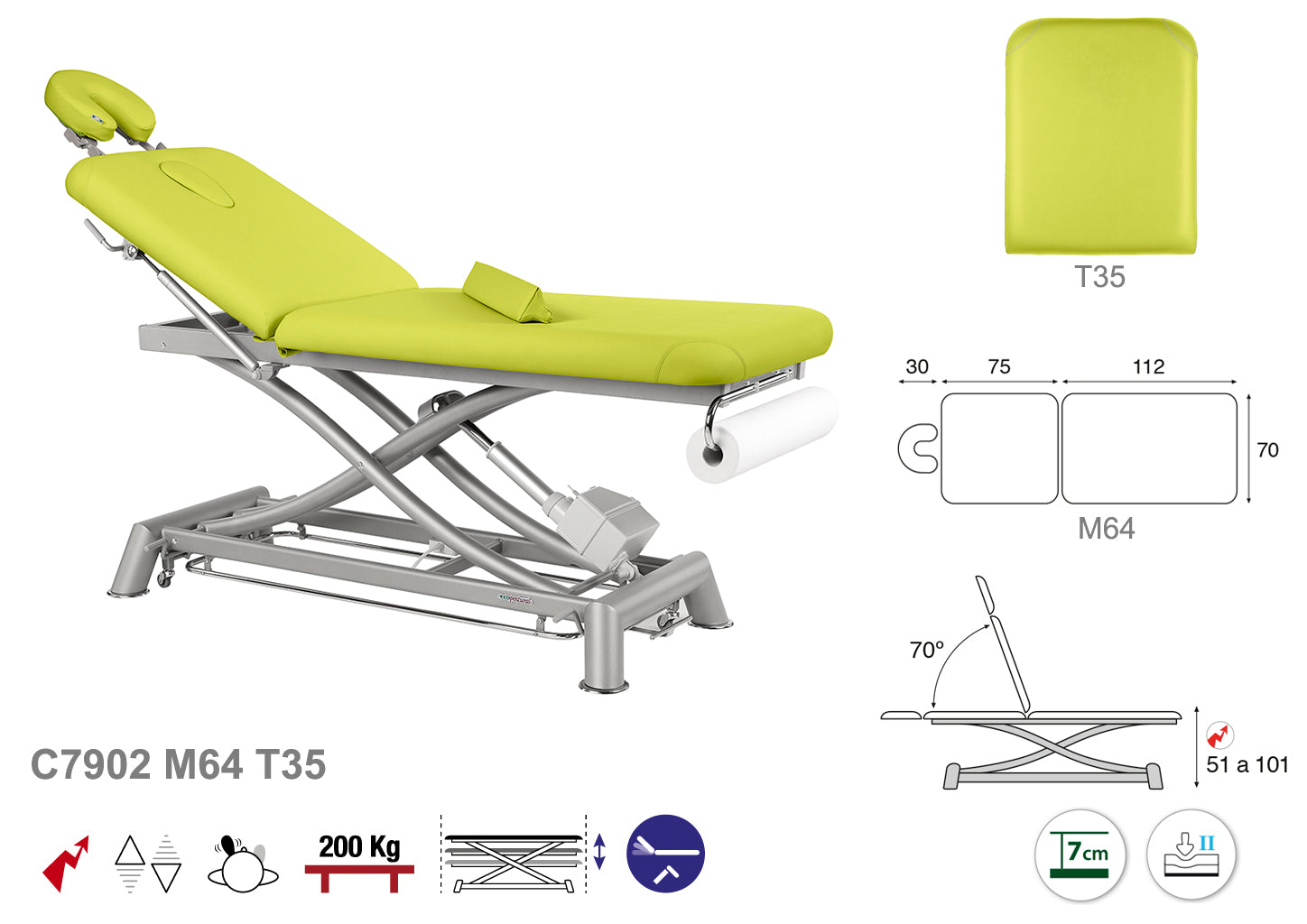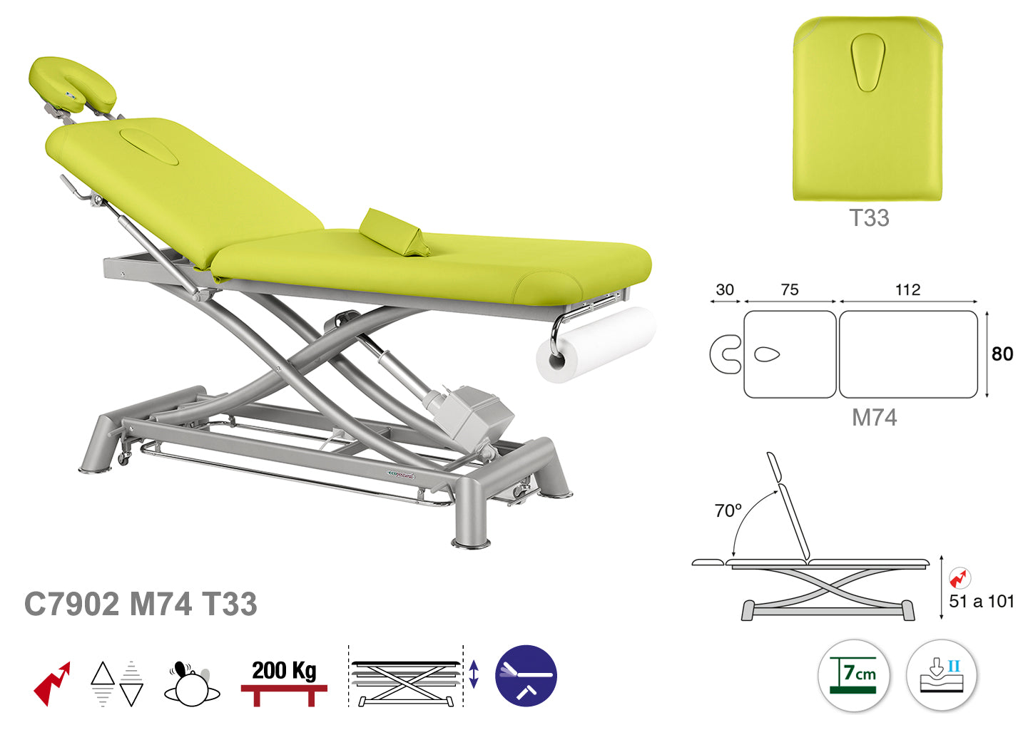 Gracias a su sistema eléctrico, la posición se regula de manera sencilla y rápida, adaptándose a las necesidades de cada paciente. La combinación de sus dos cuerpos proporciona mayor versatilidad y soporte, mejorando tanto la postura como la experiencia durante las sesiones. Con un diseño robusto y acabado en gris, garantiza durabilidad y un aspecto profesional para cualquier espacio clínico.