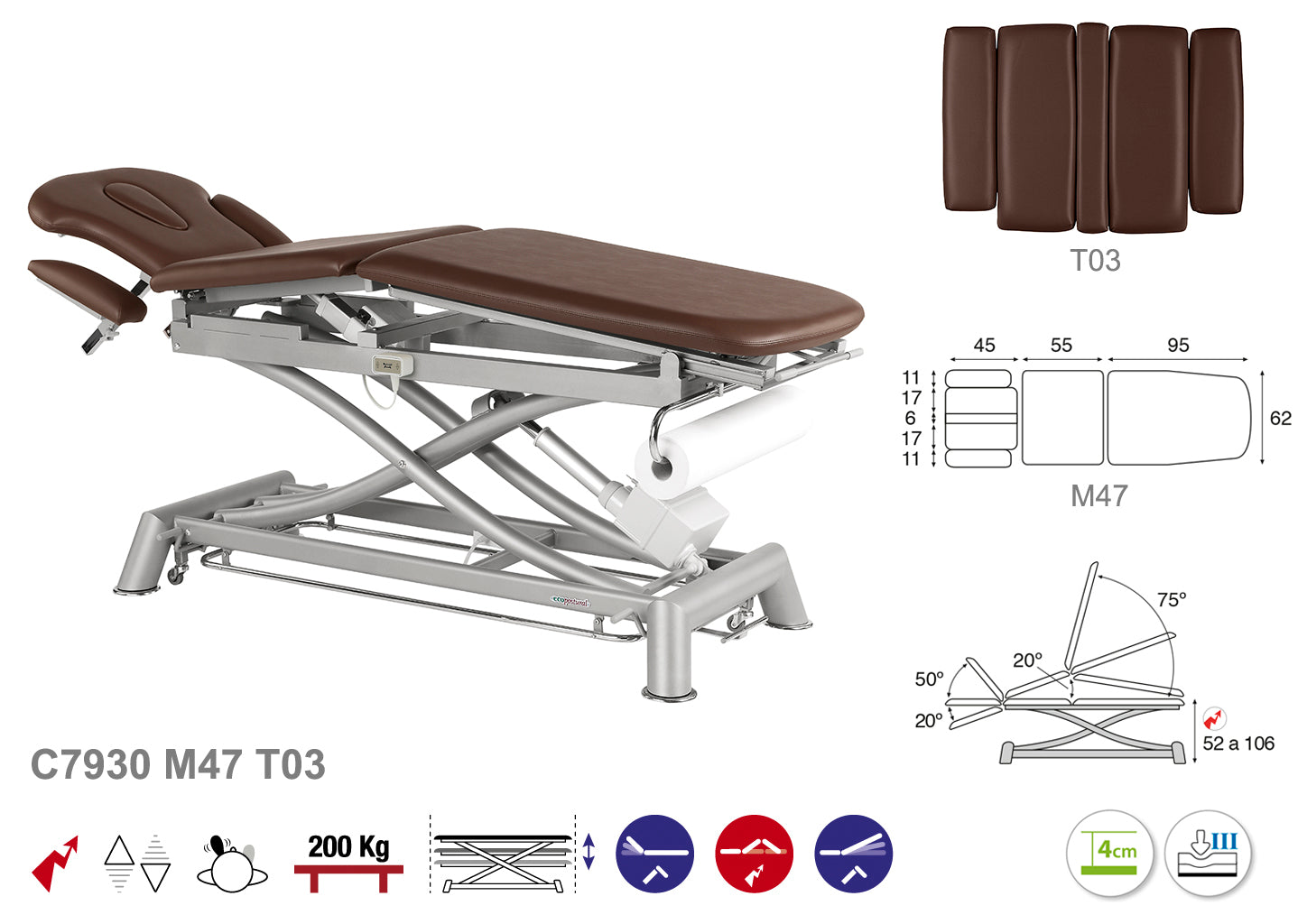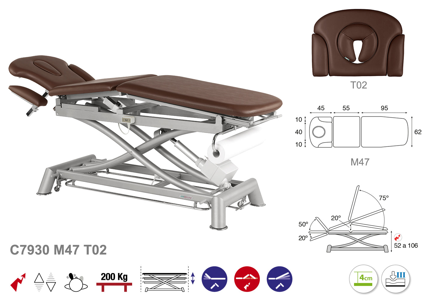Su sistema eléctrico permite ajustar fácilmente la posición tijera, optimizando el acceso y la postura durante las terapias. Fabricada con materiales de alta calidad, proporciona estabilidad y durabilidad, facilitando el trabajo del profesional al mejorar la ergonomía y minimizar esfuerzos físicos. Este equipo multifuncional es ideal para diversas aplicaciones clínicas, adaptándose a las necesidades específicas de cada paciente con seguridad y eficiencia.