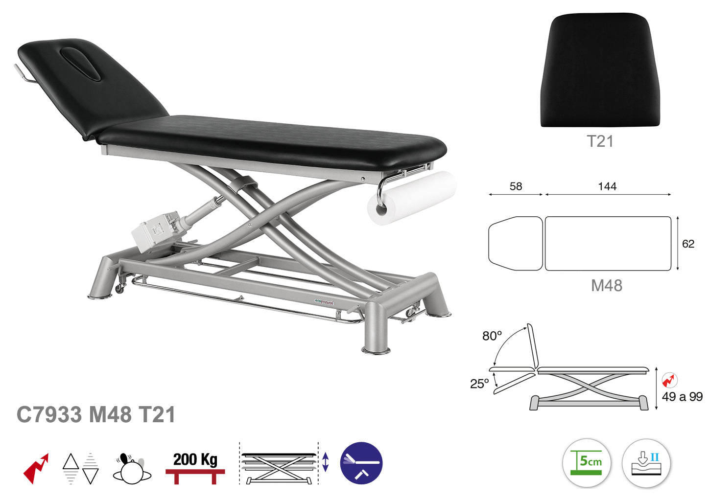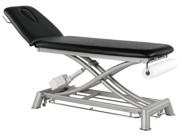 Equipada con un sistema eléctrico fiable, permite modificar la posición fácilmente, optimizando la ergonomía y mejorando la accesibilidad. Fabricada con materiales resistentes y acabado en gris, combina durabilidad y estética profesional, ideal para un uso intensivo en consultorios y centros terapéuticos.