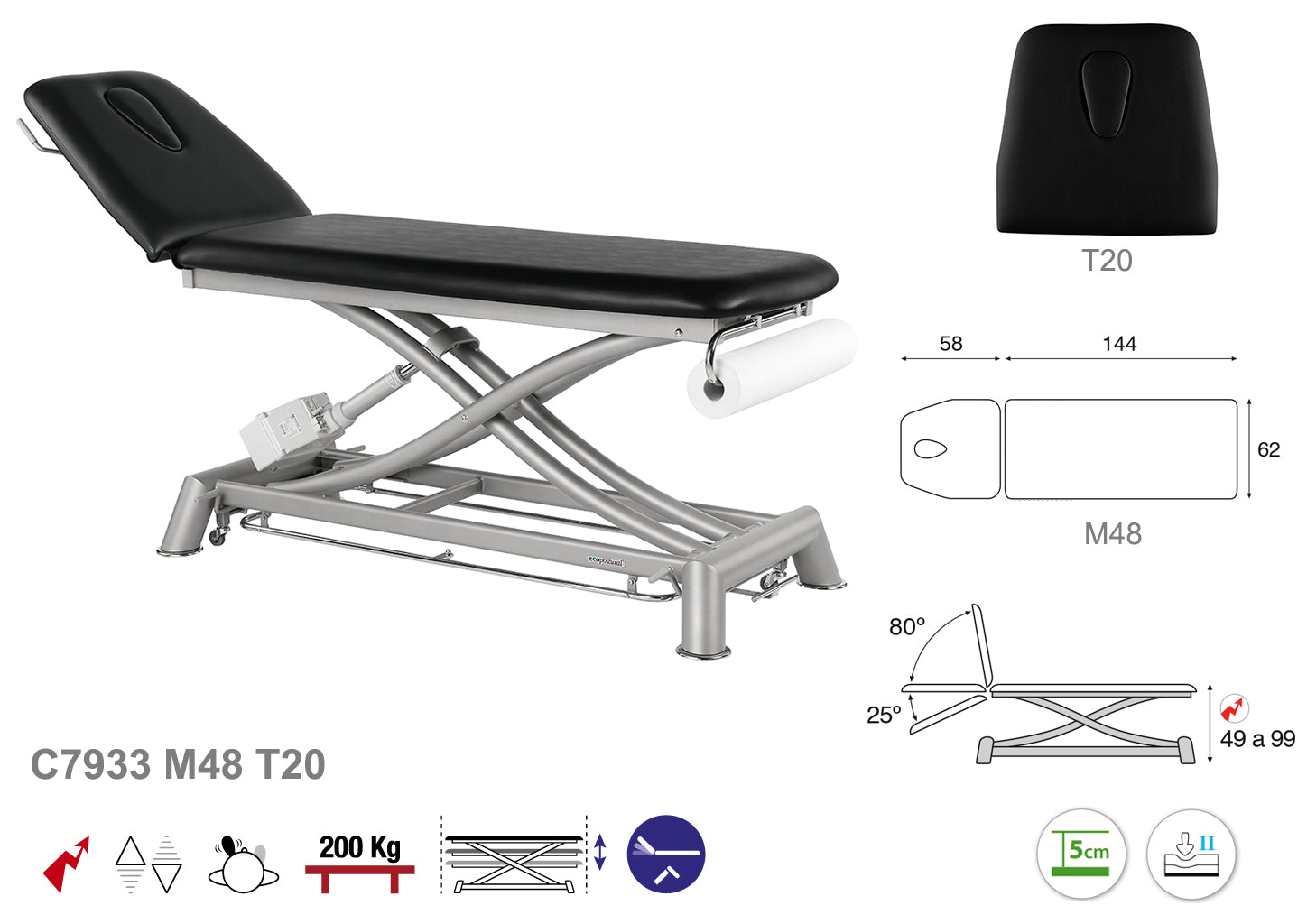 La Camilla Eléctrica Ecopostural Tijera Gris de 2 Cuerpos, con unas dimensiones de 62x207 cm y modelo C7933, está diseñada para ofrecer confort y funcionalidad en entornos clínicos y de rehabilitación. Su estructura de tijera permite un ajuste preciso y estable de la altura, facilitando la correcta postura tanto del paciente como del profesional durante la intervención.