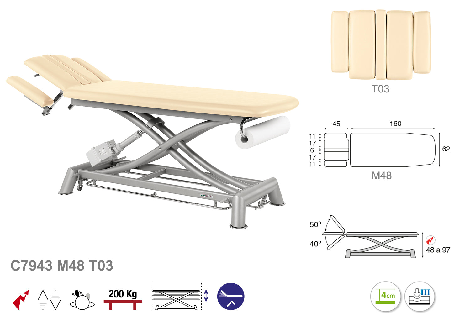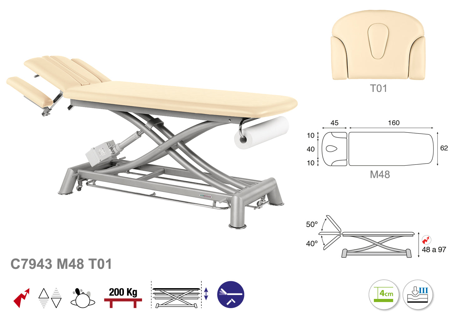 Su sistema eléctrico permite ajustes precisos y suaves en altura, facilitando el acceso y la comodidad tanto para el paciente como para el terapeuta. Su estructura tijera garantiza una estabilidad óptima y un soporte seguro durante los tratamientos. Además, el diseño en color gris técnico aporta un acabado moderno y profesional, ideal para entornos clínicos exigentes. Esta camilla combina durabilidad y ergonomía para mejorar la eficiencia en el trabajo diario.
