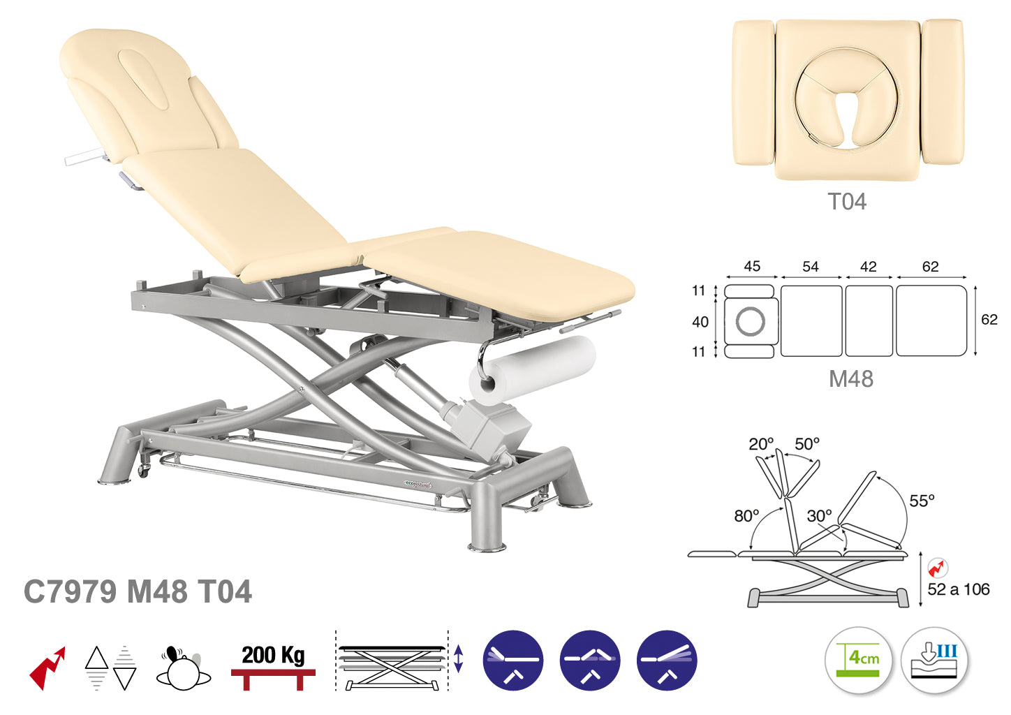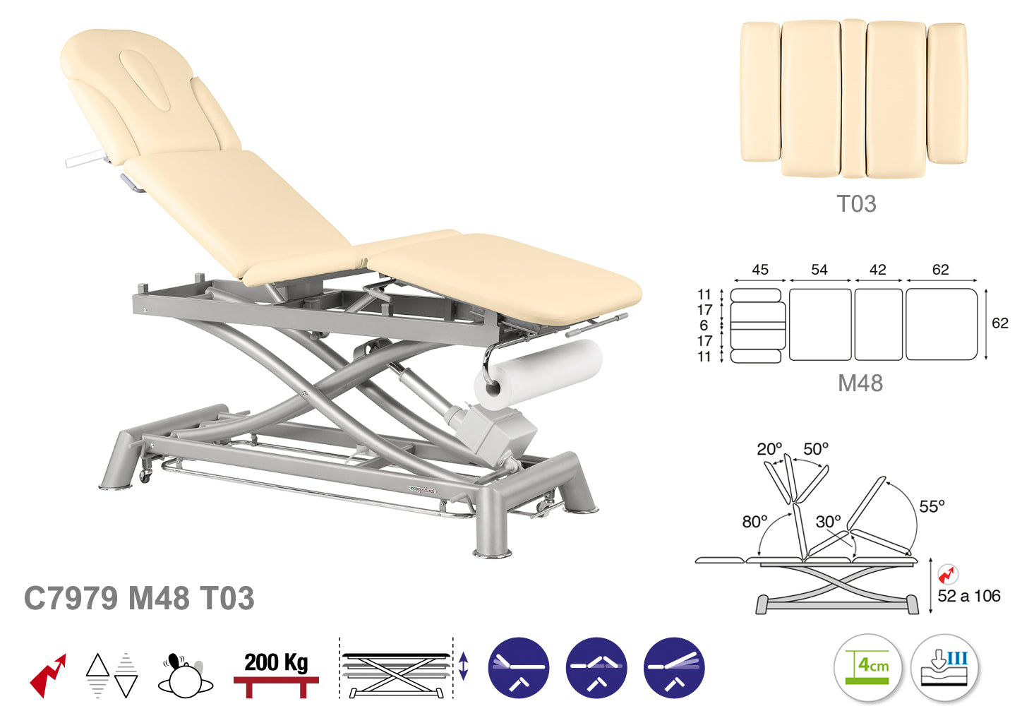 La Camilla Eléctrica Ecopostural Tijera Gris Técnica modelo C7979, con medidas de 62x207 cm, está diseñada para ofrecer máxima funcionalidad y confort en entornos clínicos y terapéuticos.
