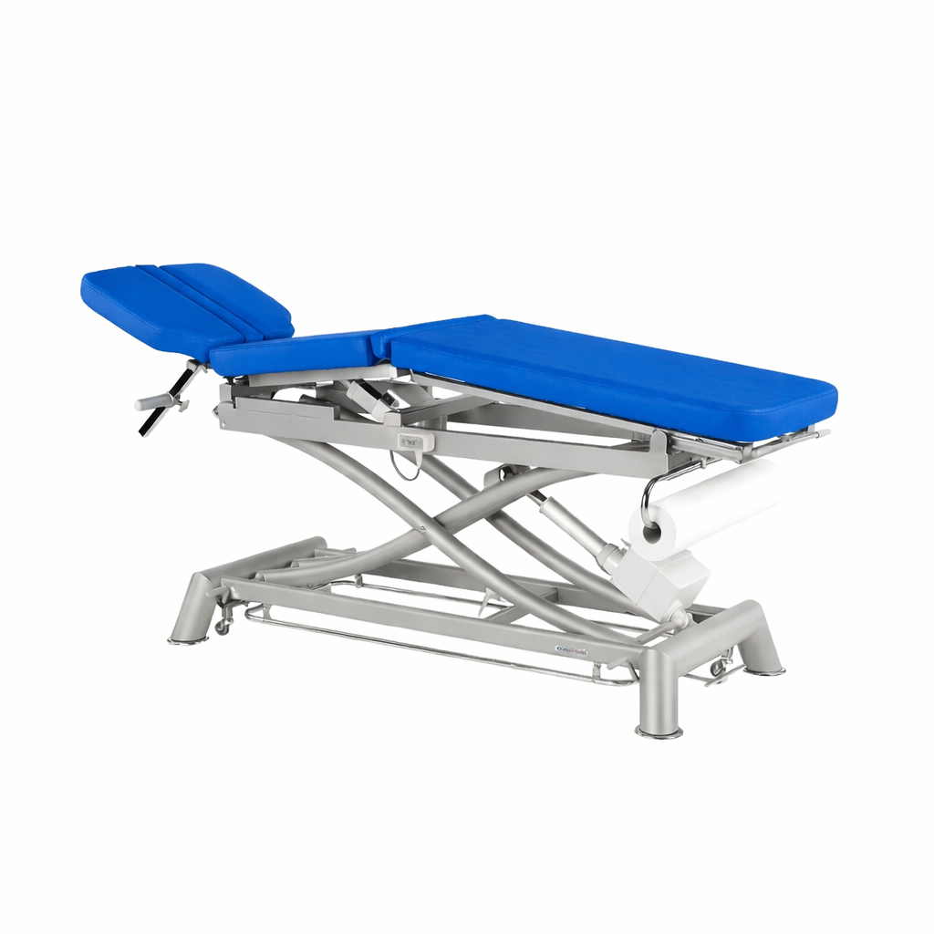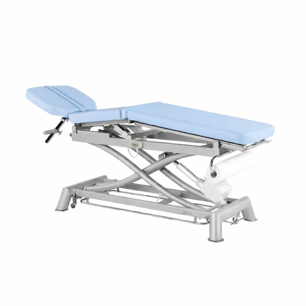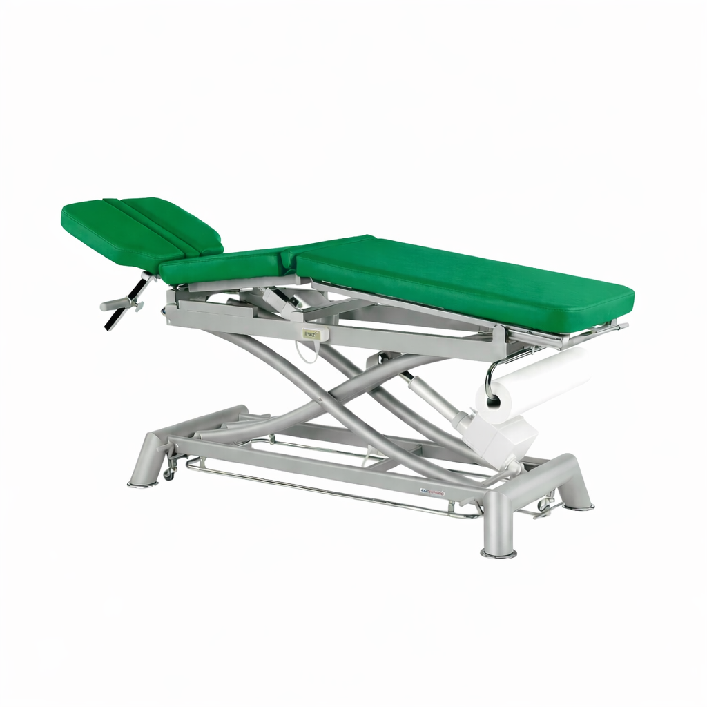 Su estructura robusta garantiza estabilidad y durabilidad, mientras que los materiales de calidad aseguran un mantenimiento sencillo y una comodidad óptima para el paciente. Ideal para fisioterapia, rehabilitación y consultas médicas que demandan un equipamiento fiable y multifuncional.