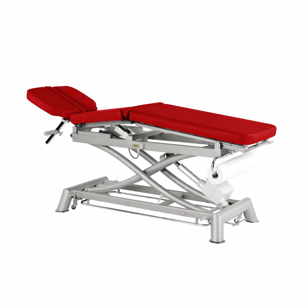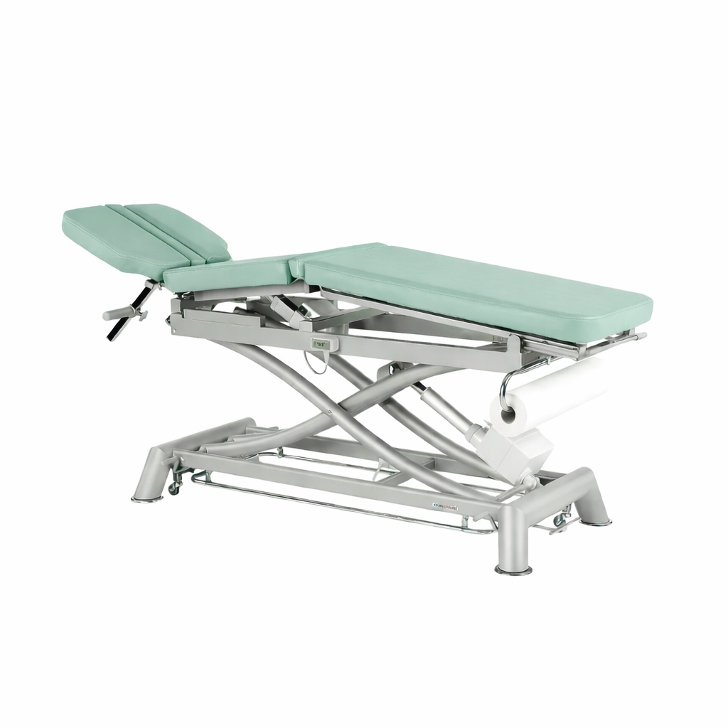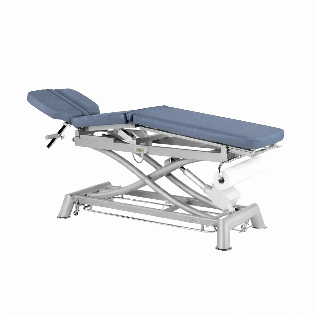 Su estructura robusta garantiza estabilidad y durabilidad, mientras que los materiales de calidad aseguran un mantenimiento sencillo y una comodidad óptima para el paciente. Ideal para fisioterapia, rehabilitación y consultas médicas que demandan un equipamiento fiable y multifuncional.