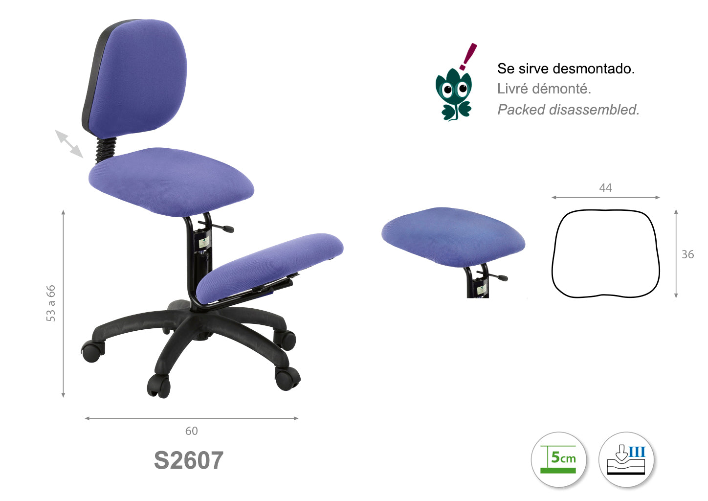 Este sillón cuenta con una base negra robusta que garantiza estabilidad y durabilidad durante su uso. Incorpora un arrodilladero fijo diseñado para mantener una postura cómoda y ergonómica, ideal para quienes requieren soporte durante largos periodos de trabajo o estudio.