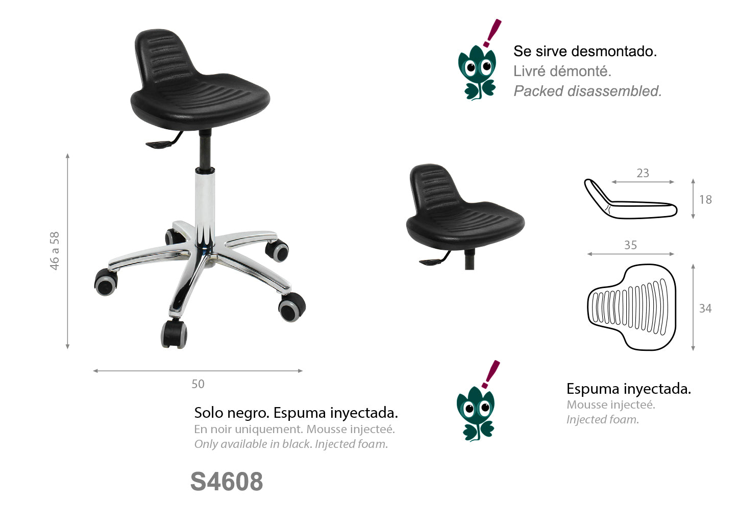 Este taburete con asiento integral y base de aluminio ofrece una combinación ideal de resistencia y ligereza, aportando comodidad y estabilidad a cualquier espacio. Su diseño ergonómico facilita una postura adecuada, mientras que la base de aluminio garantiza durabilidad y resistencia al uso diario.