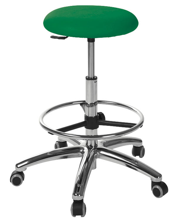 Este taburete circular con base de aluminio ofrece una estructura resistente y ligera, ideal para uso prolongado. Su diseño incluye un aro reposapiés que proporciona mayor comodidad y apoyo para las piernas durante su uso. Perfecto para espacios que requieren mobiliario duradero y funcional, combina estabilidad con un estilo moderno que se adapta a diferentes ambientes.